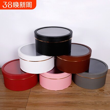 水晶圆形鲜花礼盒永生花插花圆形礼盒透明开窗花束礼盒包装空盒子
