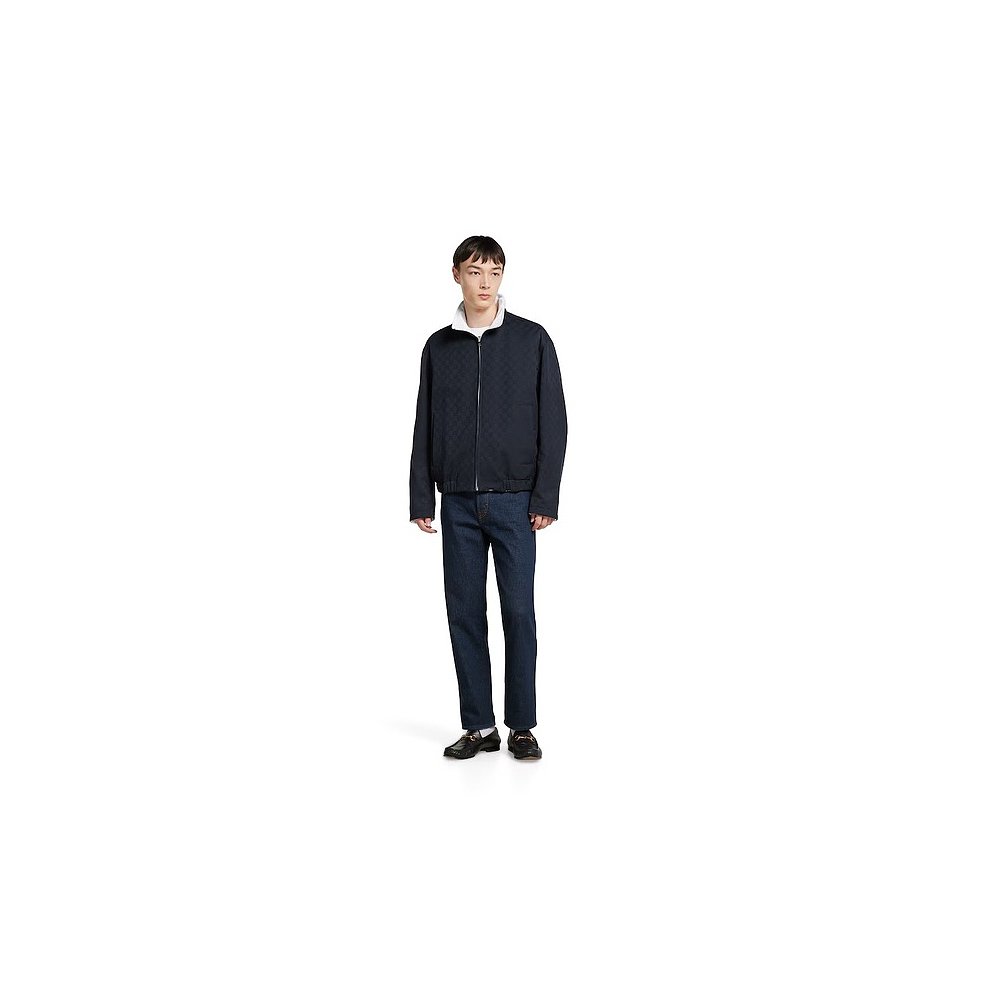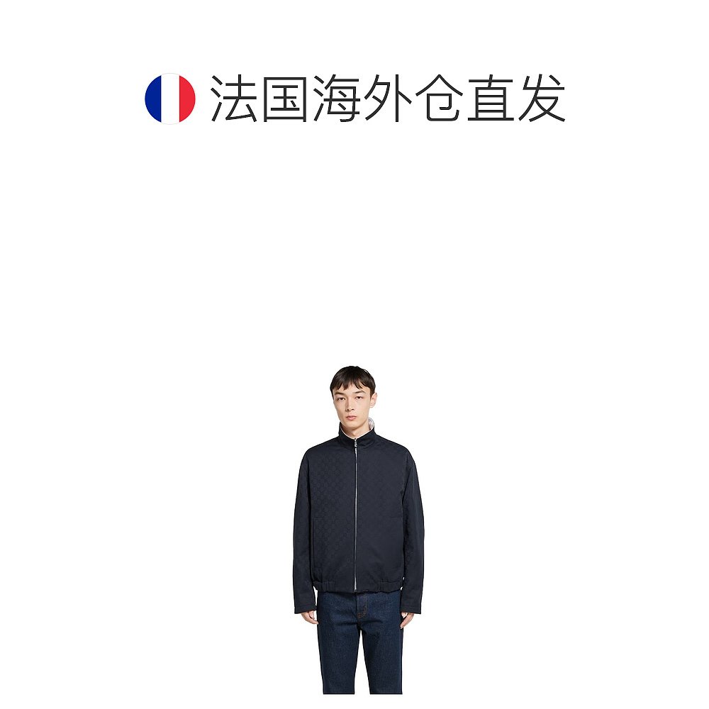 自营欧洲直邮Gucci/古驰 男士深蓝色棉质华达呢logo标识印花压纹