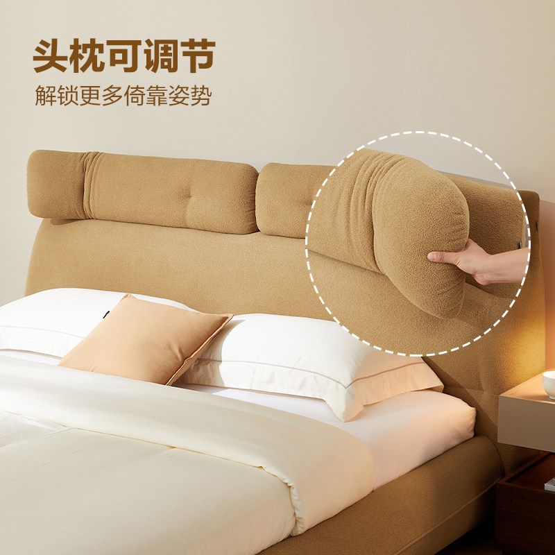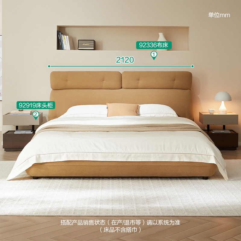 全友家居家具门店同款 极简风 92336 软包羊羔绒布艺双人床1.8米