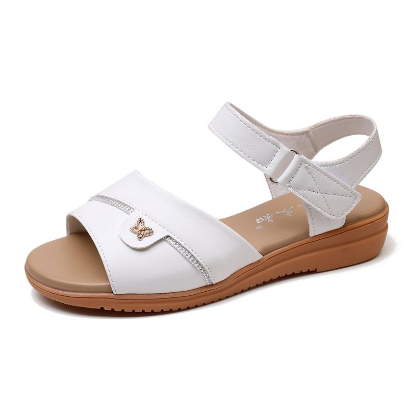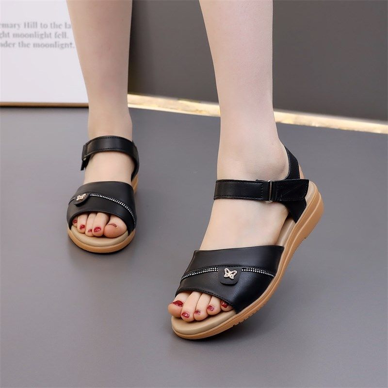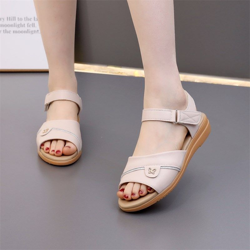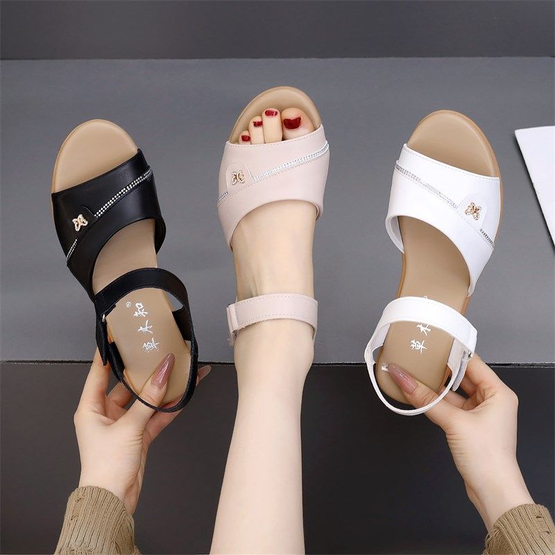 平底凉鞋女夏季新款真皮软底防滑中老年闰月妈妈坡跟外穿大码女鞋
