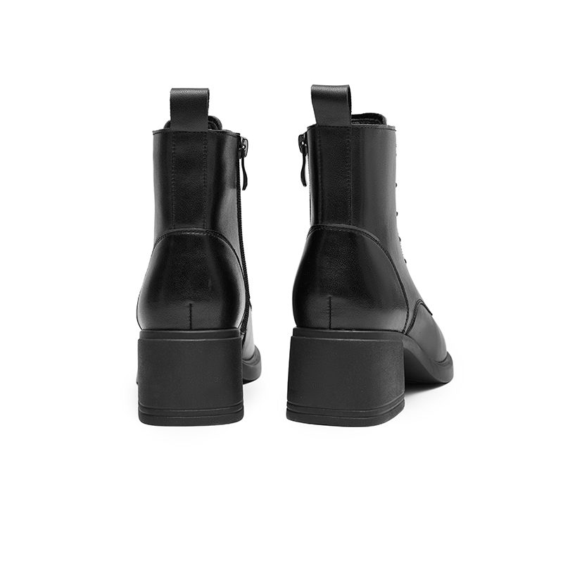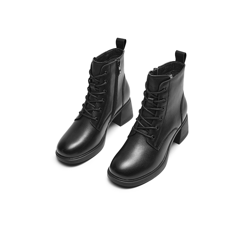 红蜻蜓女鞋冬季正品加绒短靴粗跟皮鞋中跟短筒靴妈妈棉鞋断码清仓