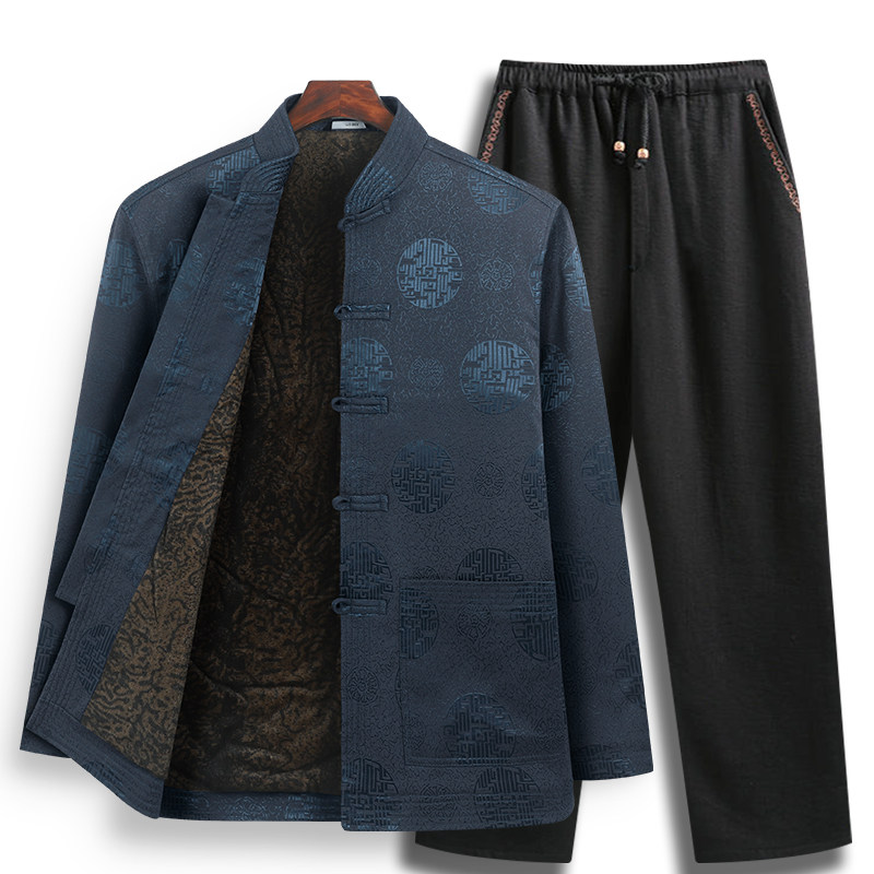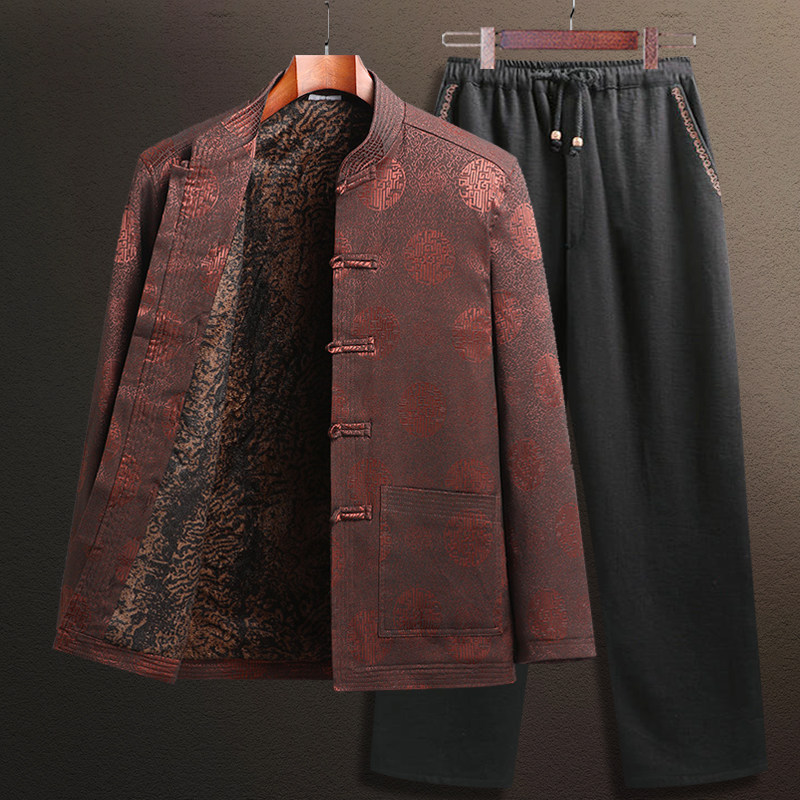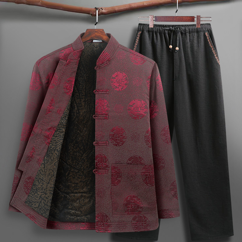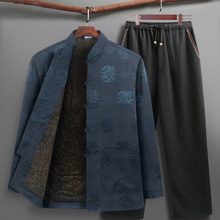 中老年唐装男冬季套装棉袄爷爷加绒加厚爸爸外套老人生日过寿棉衣