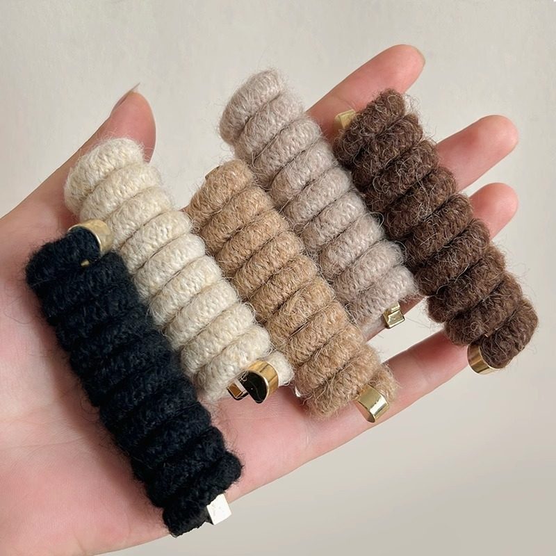 秋冬直条毛线电话线发圈女高马尾神器气质泡泡辫编发头绳耐用皮筋
