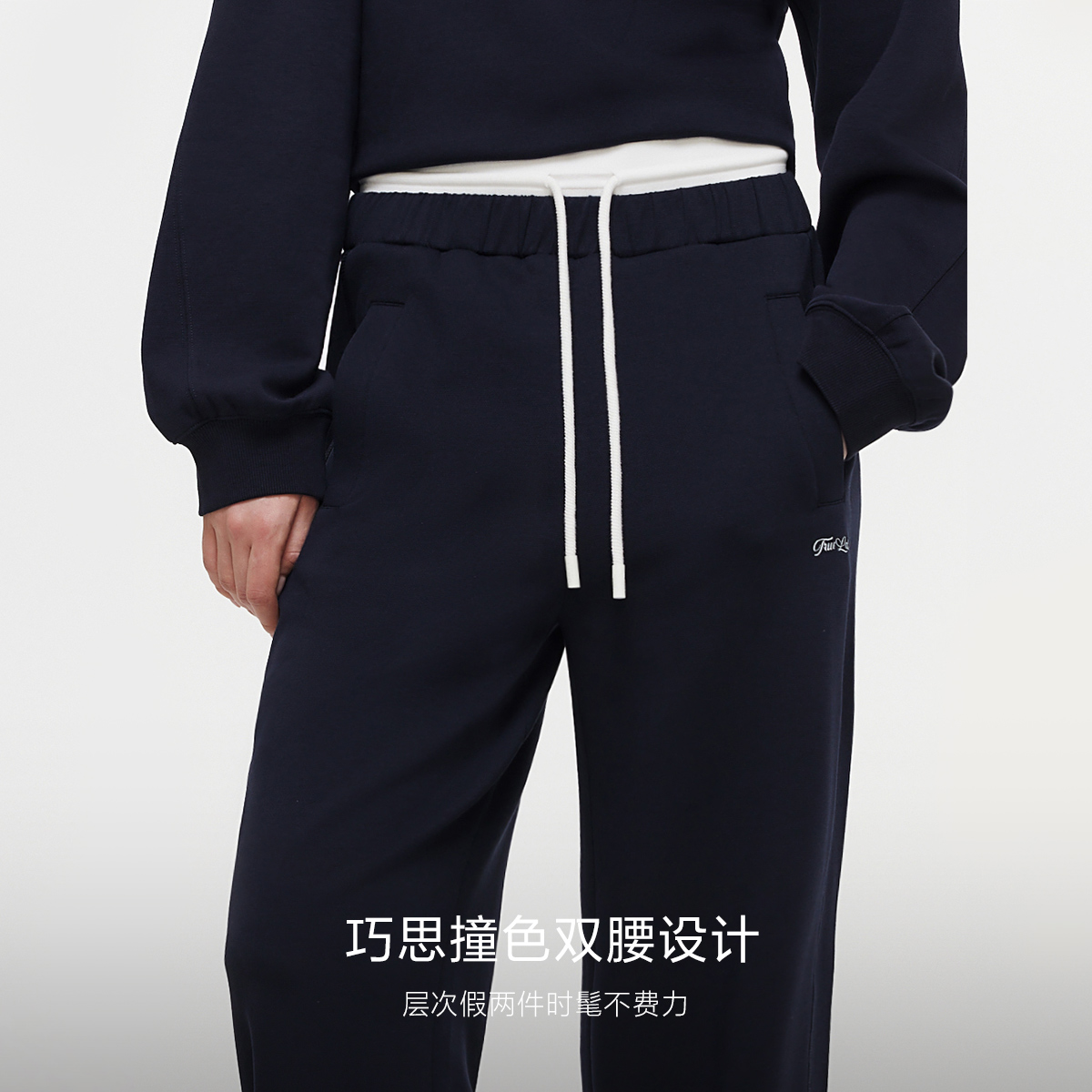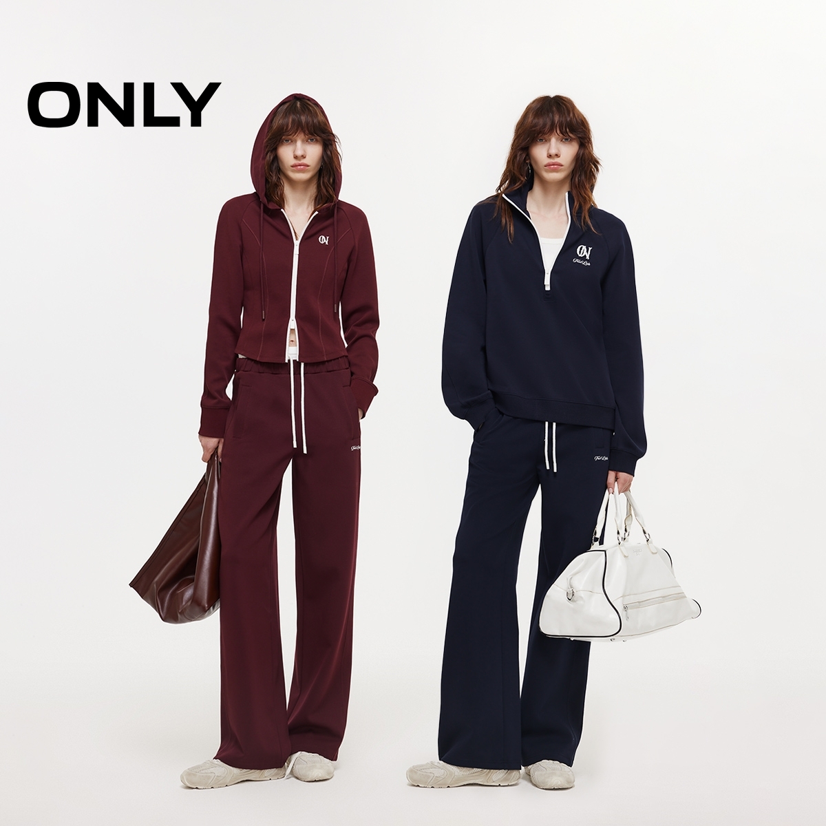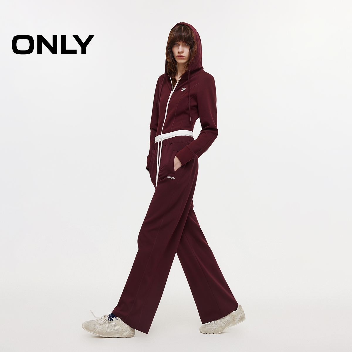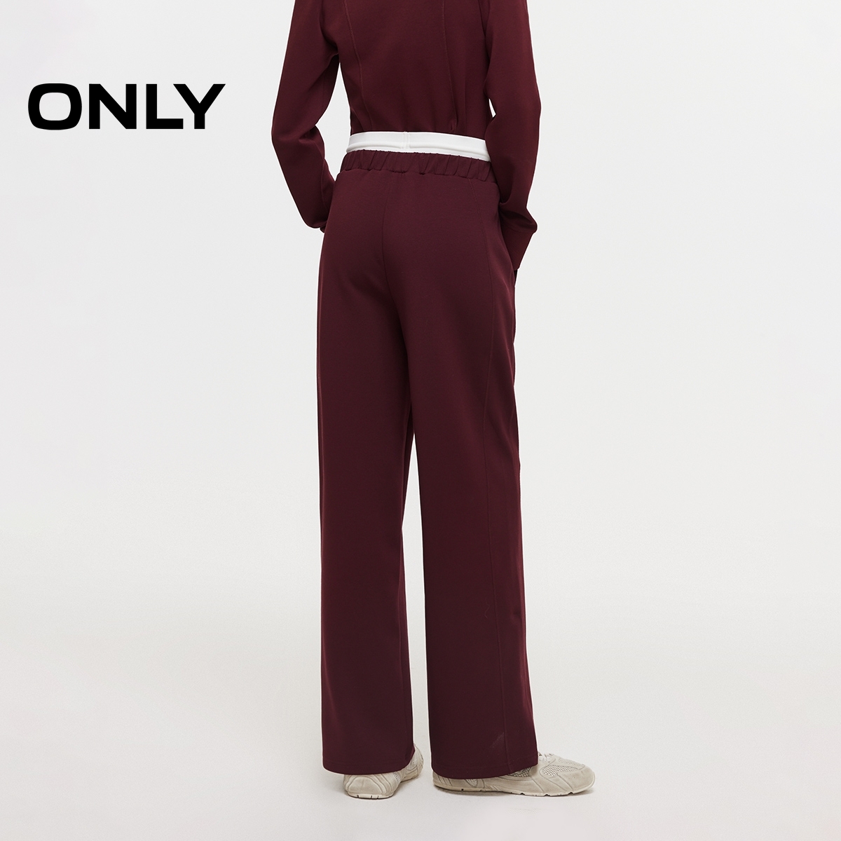 ONLY2025秋季新款撞色双腰头松紧抽绳宽松直筒卫裤长裤休闲裤女