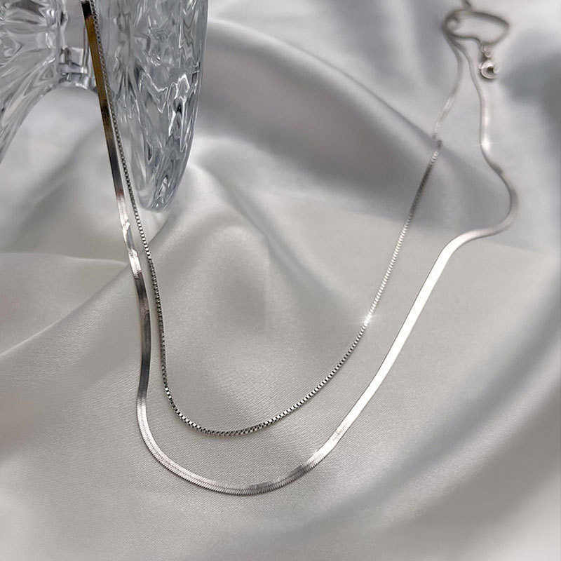 新款双层叠戴项链ins冷淡风项链轻奢简约高级感纯银项链女锁骨链