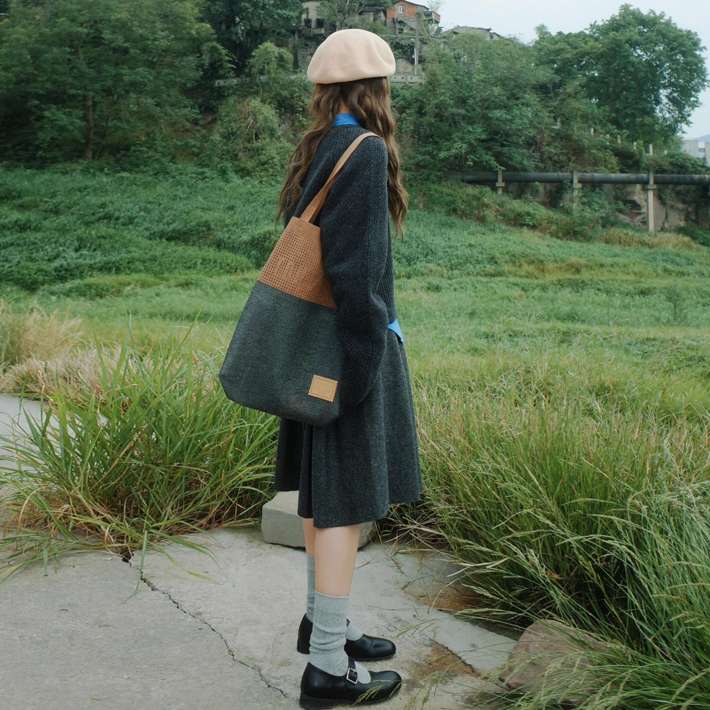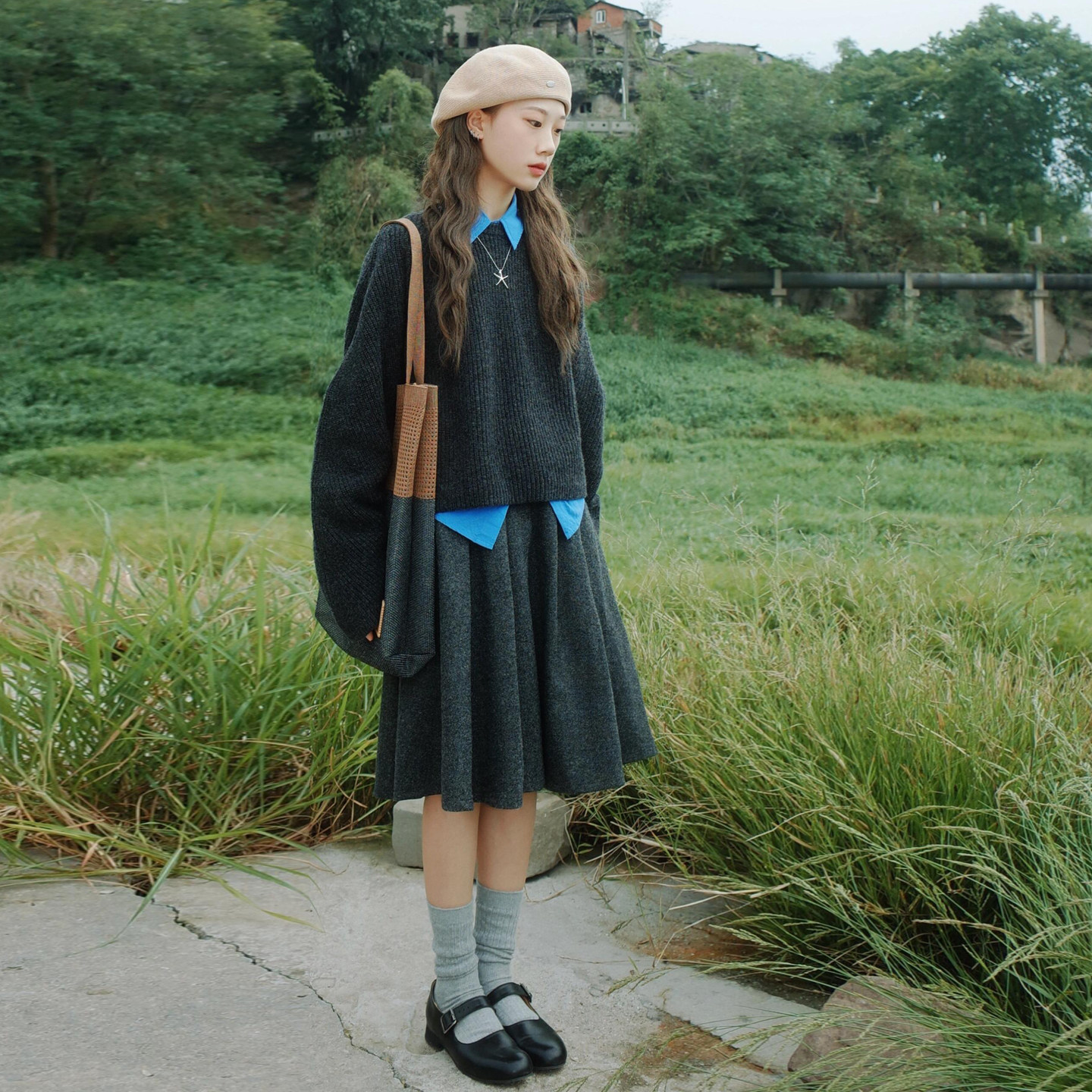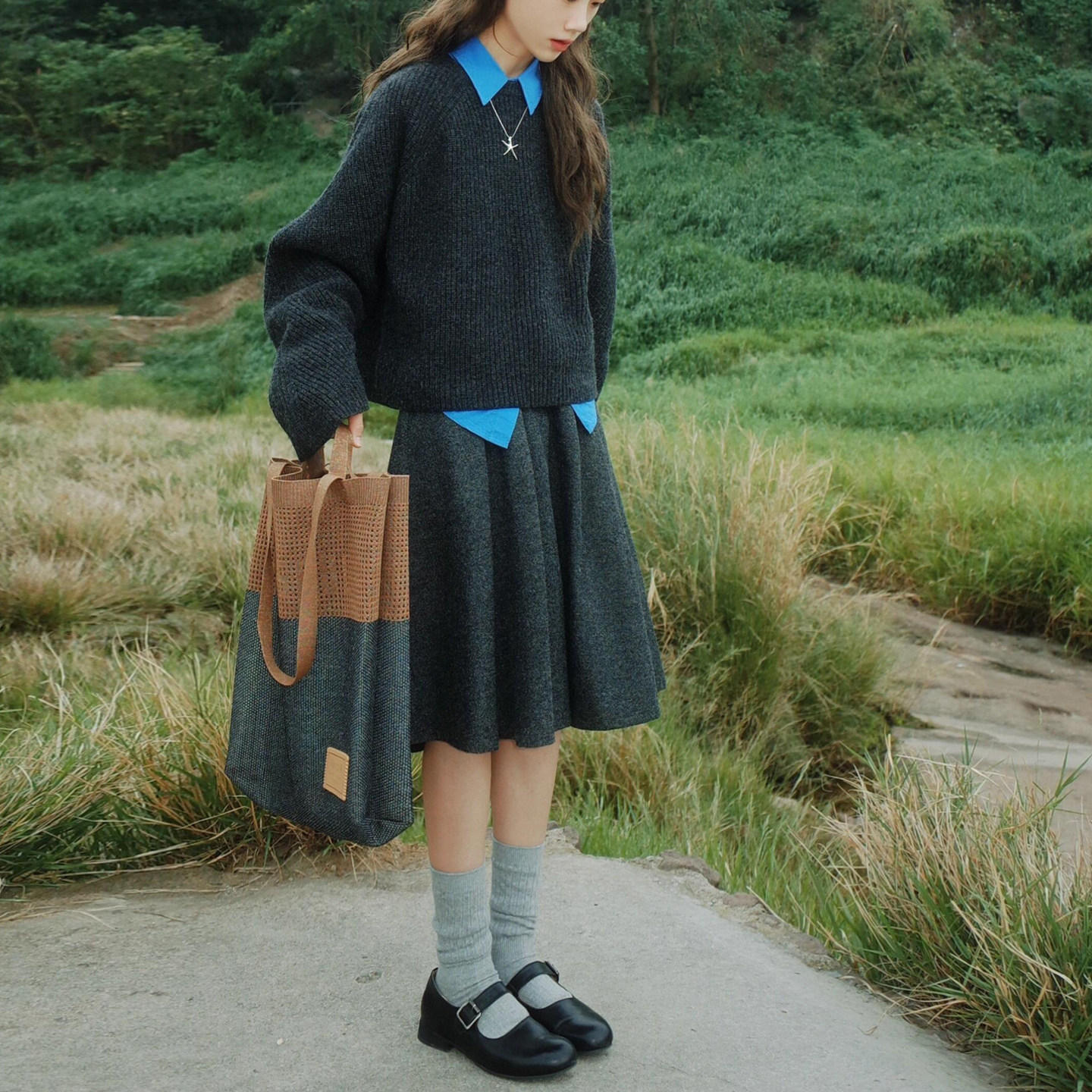 日杂风高级灰毛呢半身裙复古高腰a字裙垂感五分伞裙小个子蓬蓬裙