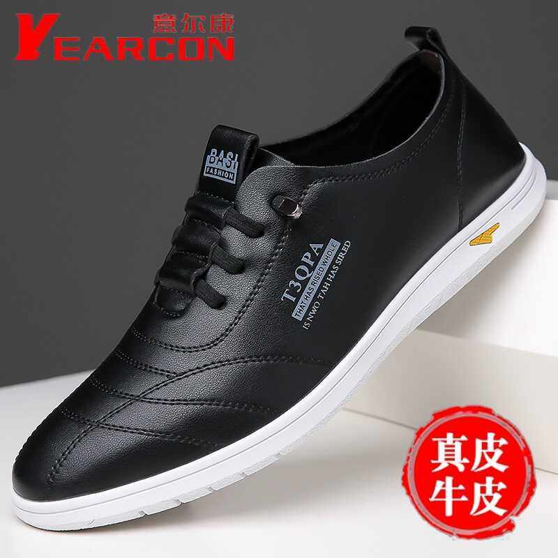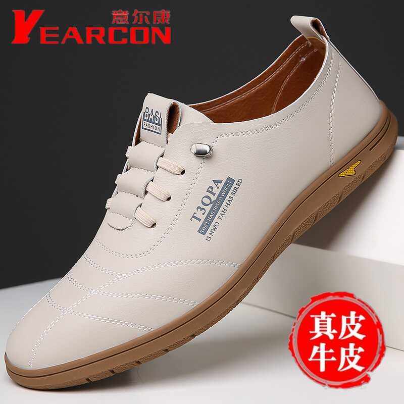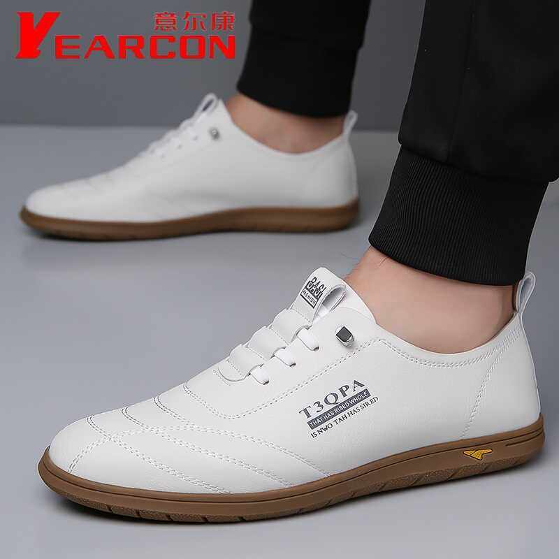 意尔康男鞋真皮2025新款透气小白鞋男士百搭软皮软底白色休闲皮鞋