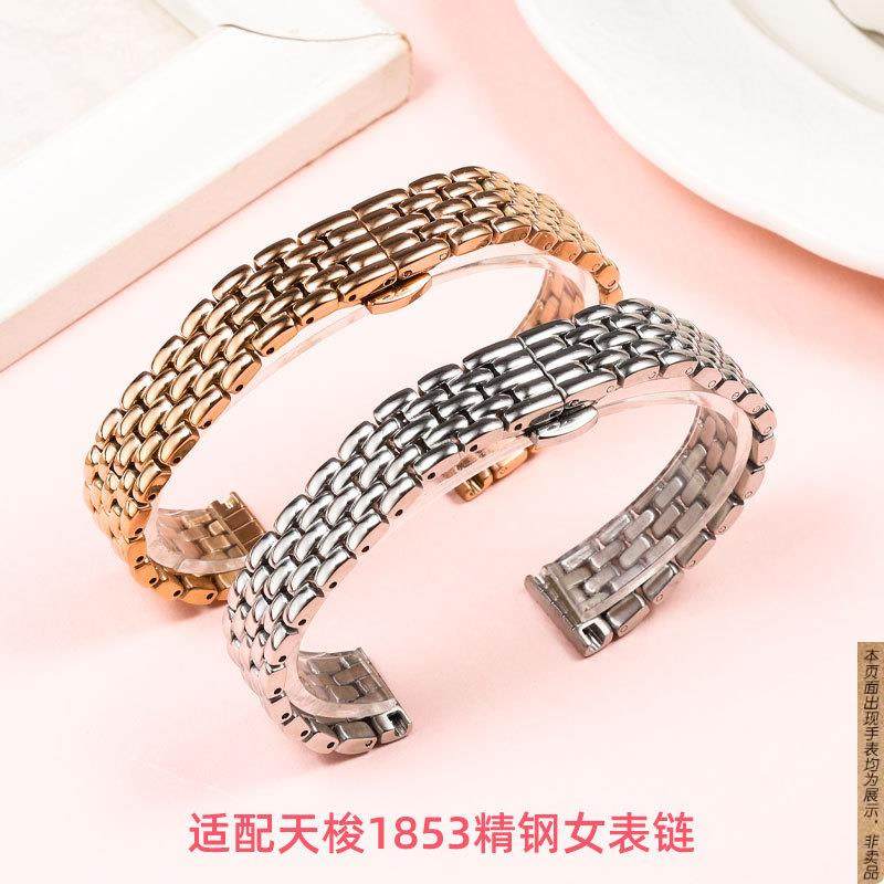 原厂代用天梭1853表带钢带女款臻时系列T103玫瑰金银色精钢手表带
