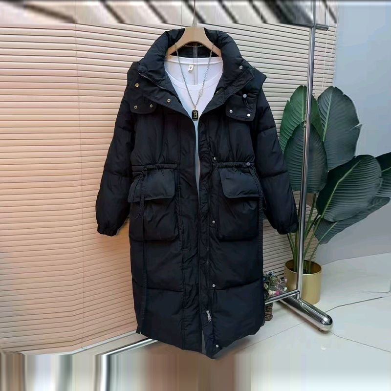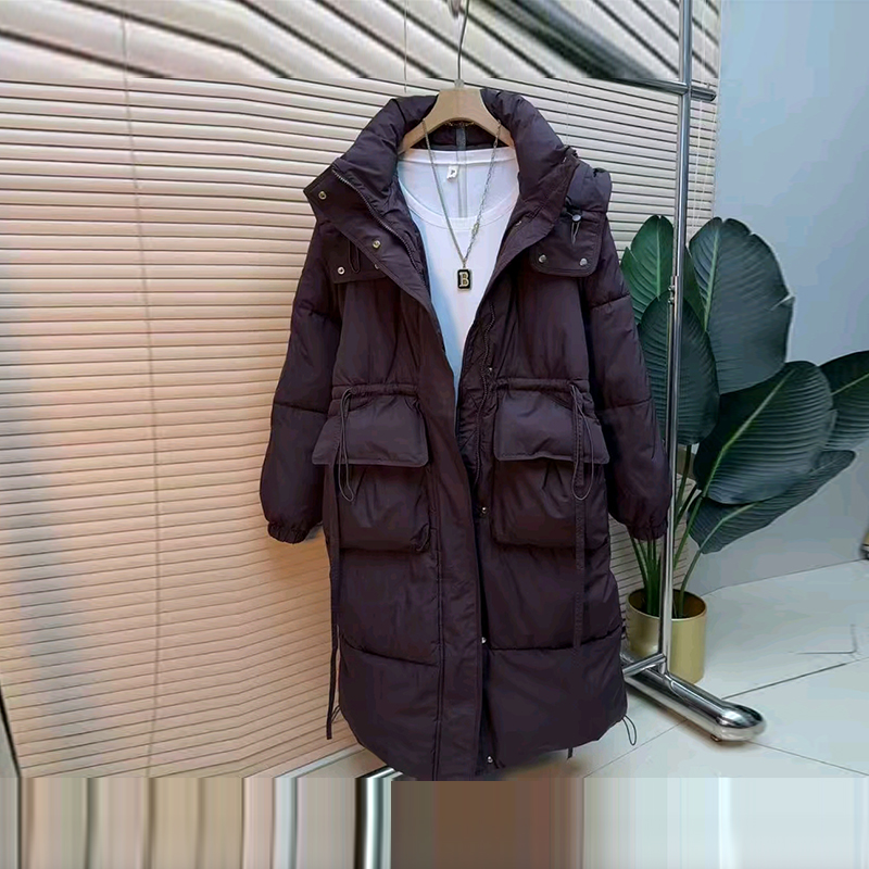 大码女装连帽双兜长款棉服