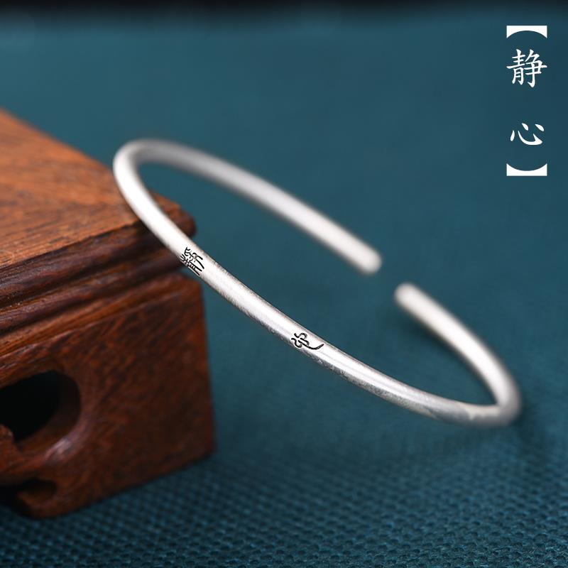 高档罗泰老古银匠银999纯银手镯女士年轻复国款风素圈男生足镯子