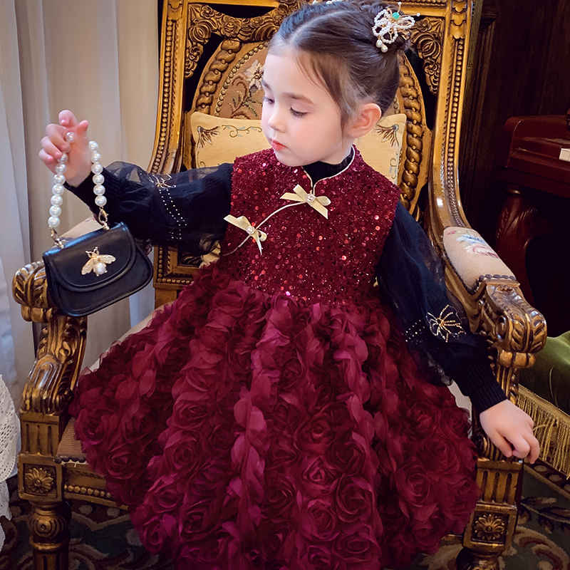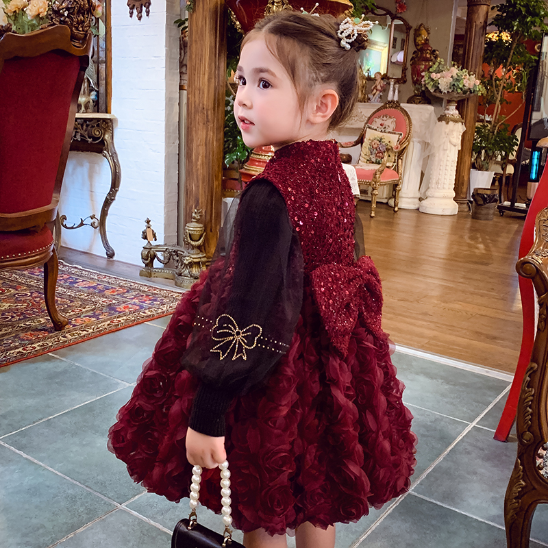 女童公主裙冬装2025新款儿童加绒网纱连衣裙小女孩法式礼服背心裙