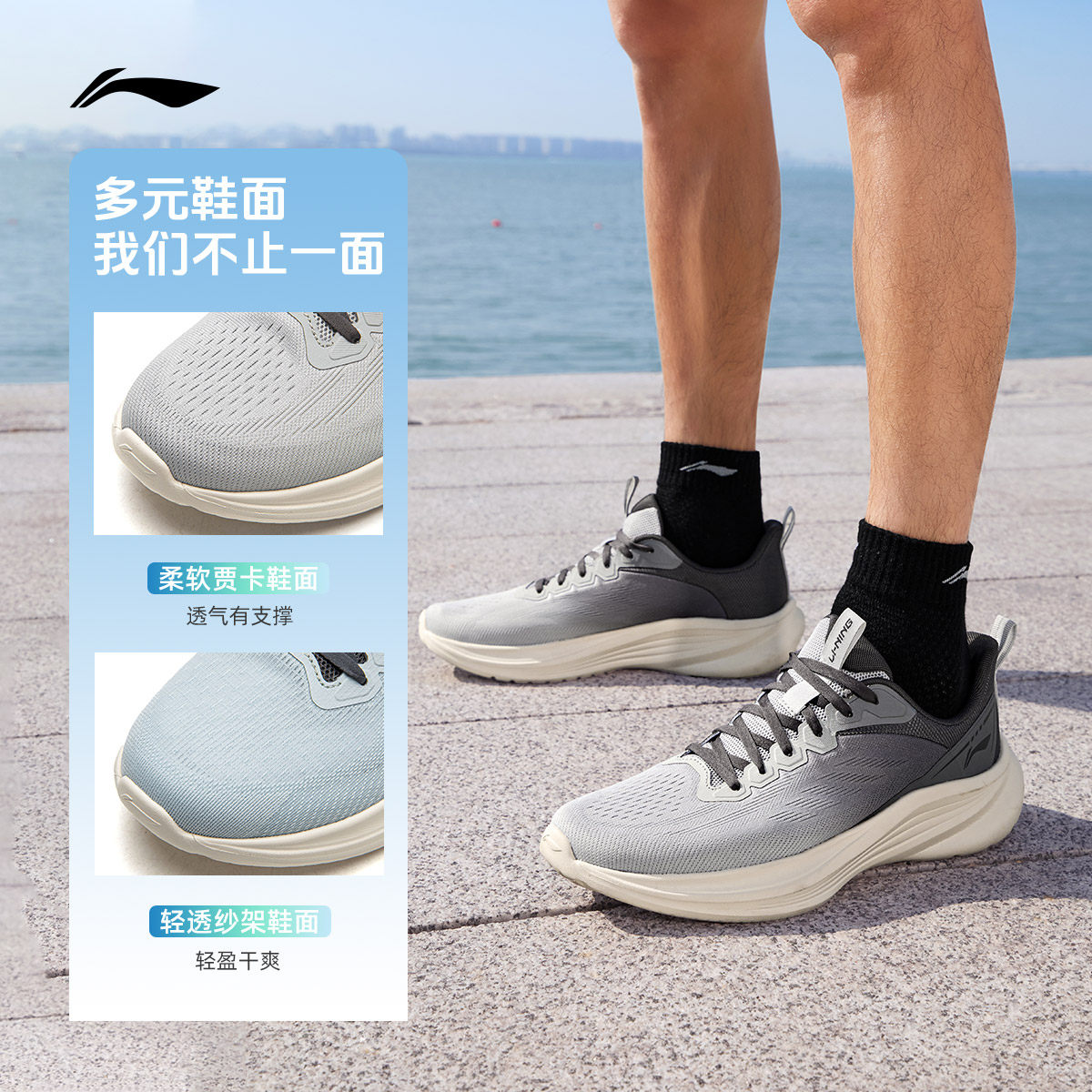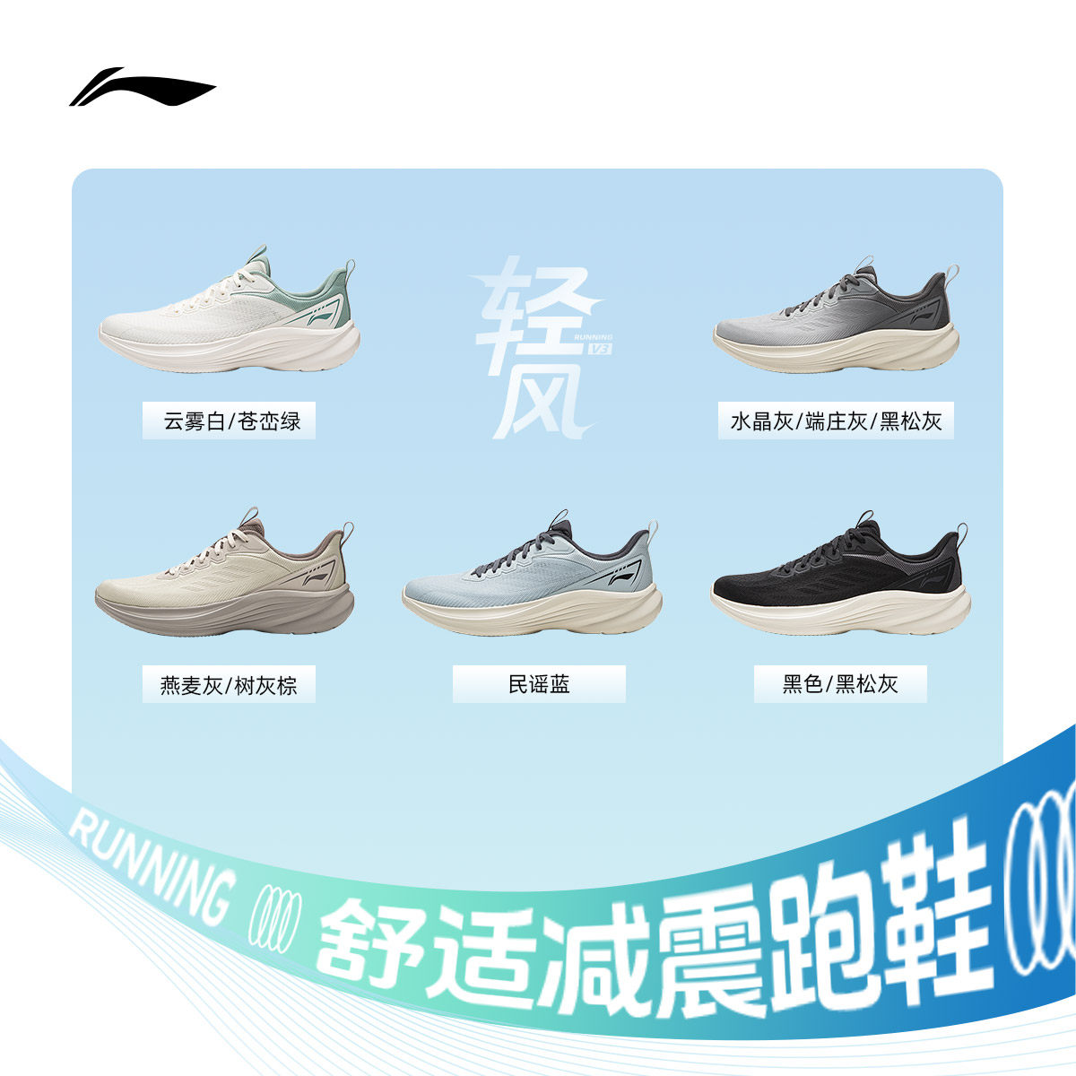 李宁轻风v3丨跑步鞋男鞋春季新款减震回弹慢跑鞋休闲百搭运动鞋子