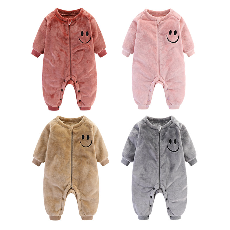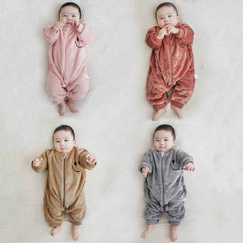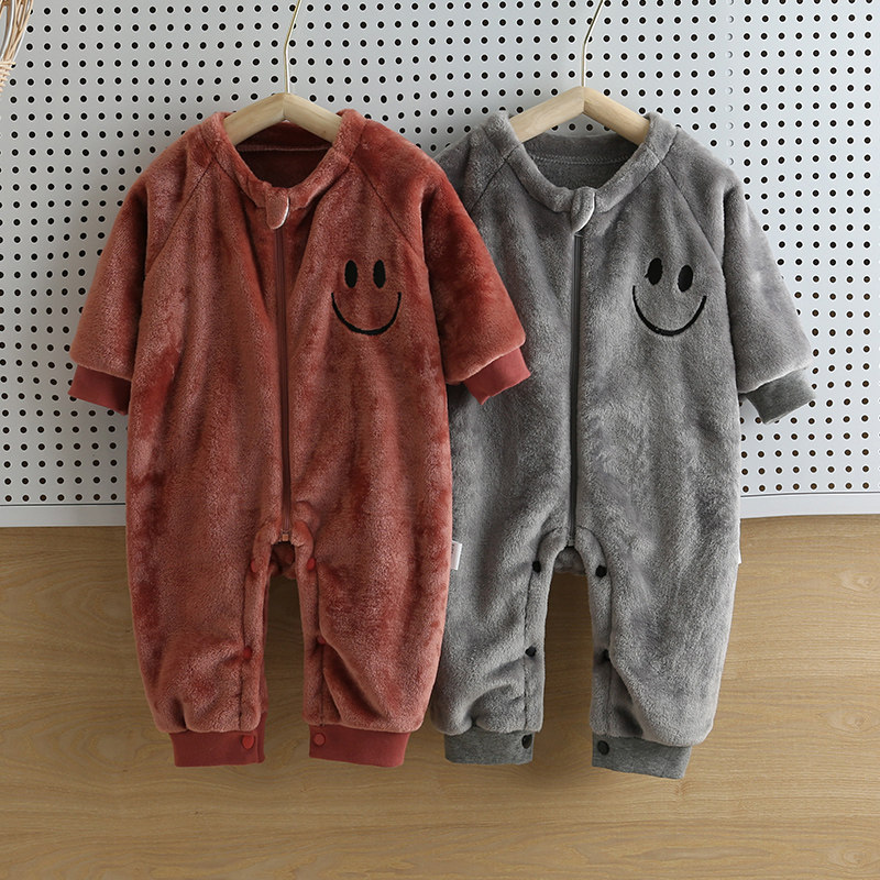法兰绒连体衣爬服宝宝拉链秋冬季
