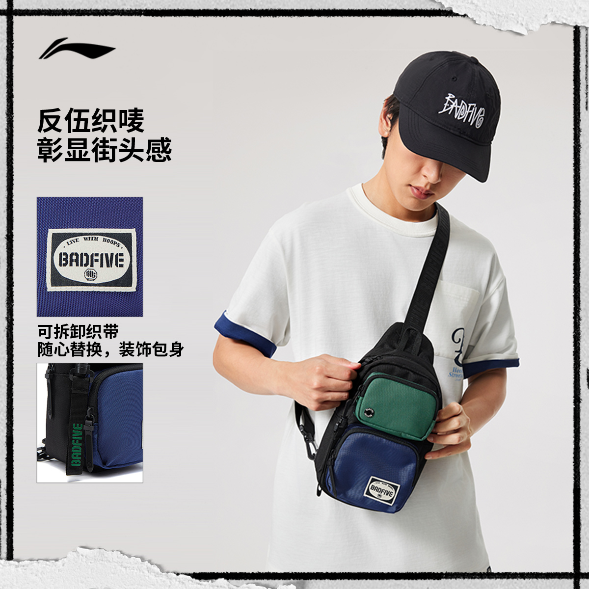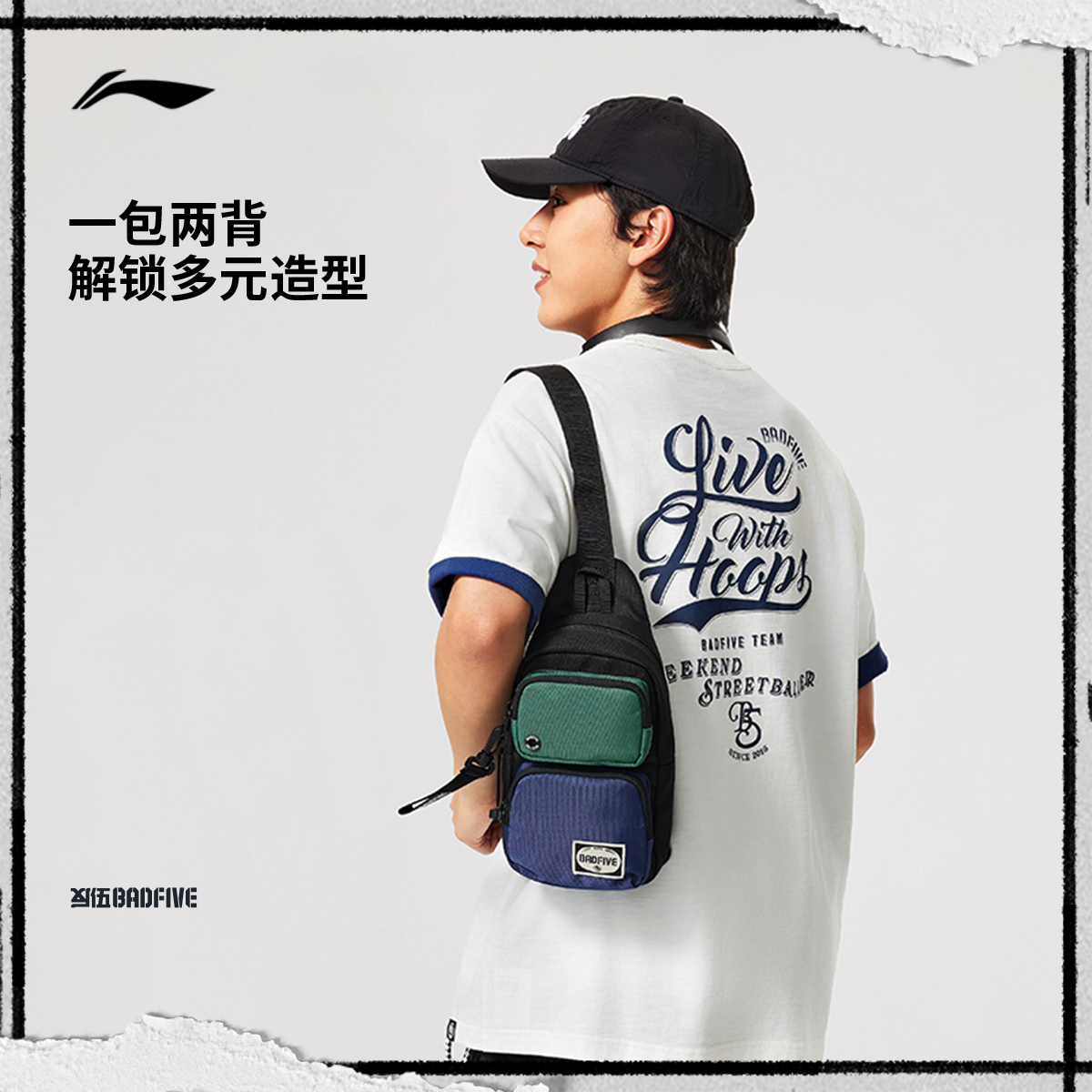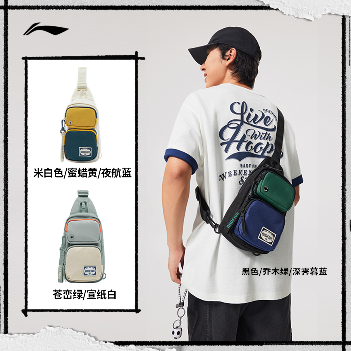 李宁反伍多功能胸包男女新款户外轻便休闲高级撞色斜挎单肩运动包