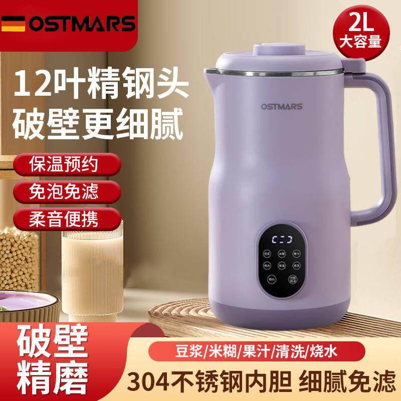 德国豆浆机家用全自动多功能2L大容量3-4人免煮免滤破壁机