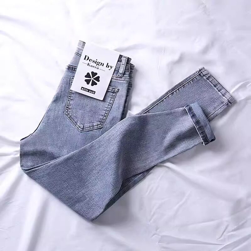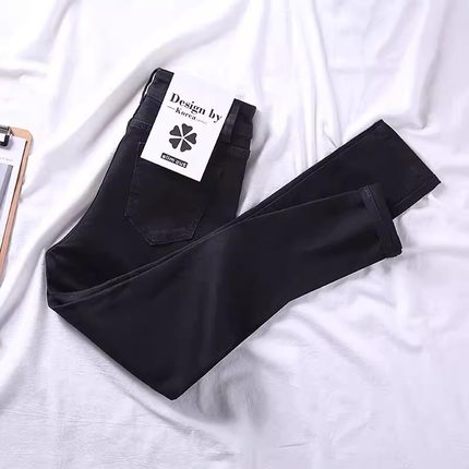 女人干活穿的显瘦黑色小脚牛仔裤女夏季新款高腰弹力九分铅笔裤子