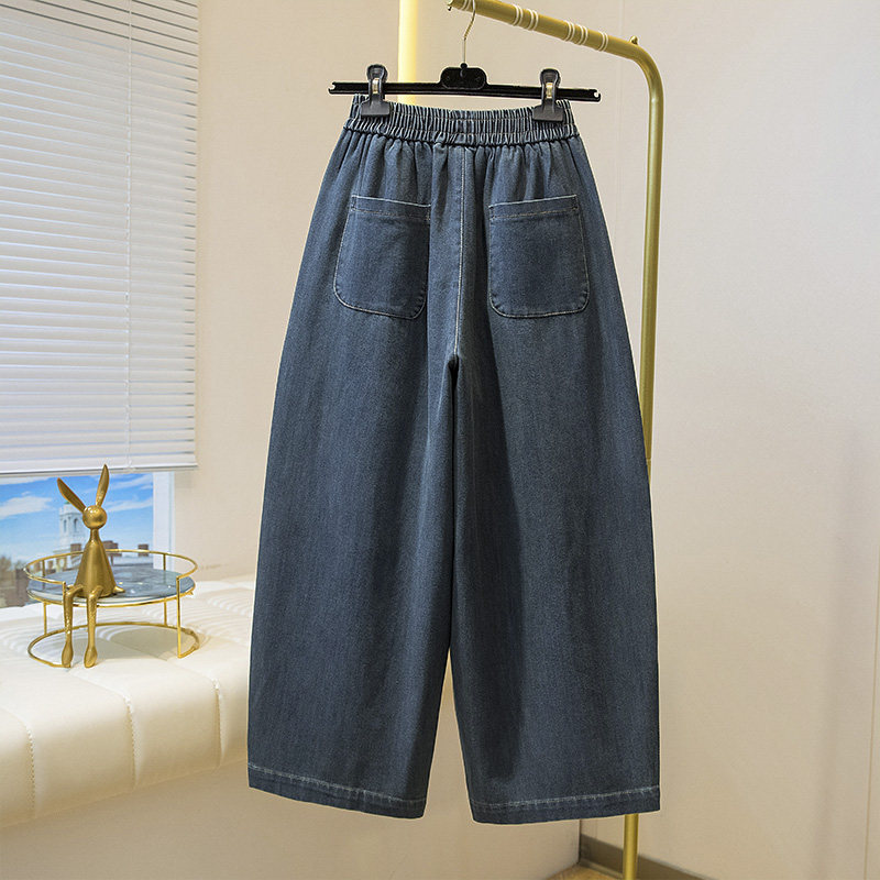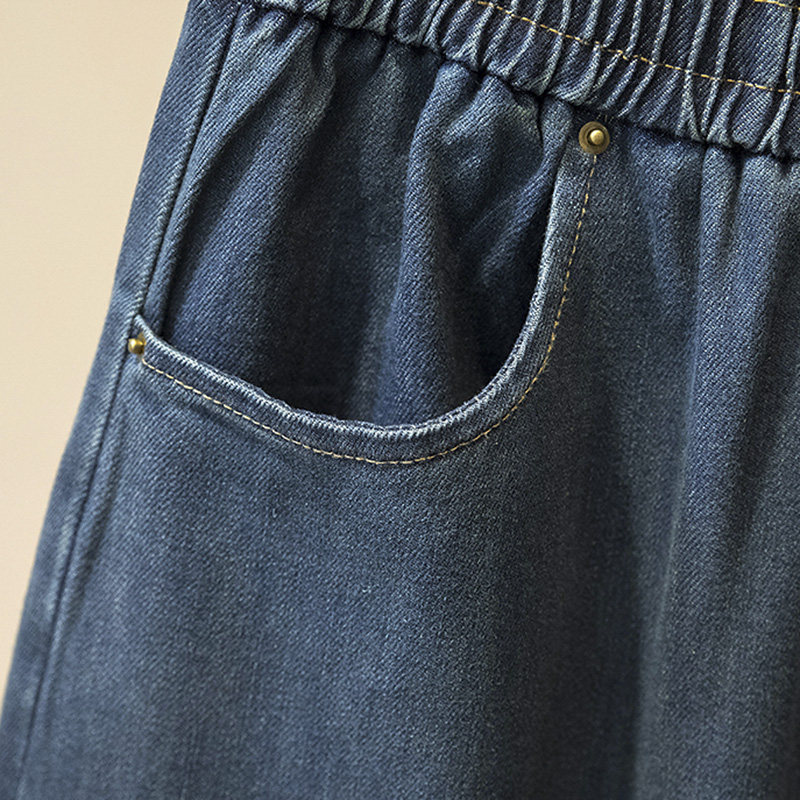 松紧腰牛仔裤女大码宽松哈伦裤子