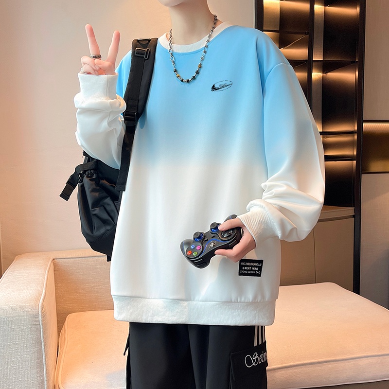 耐克顿卫衣男春秋季新款宽松休闲长袖T恤时尚潮流渐变色圆领衣服
