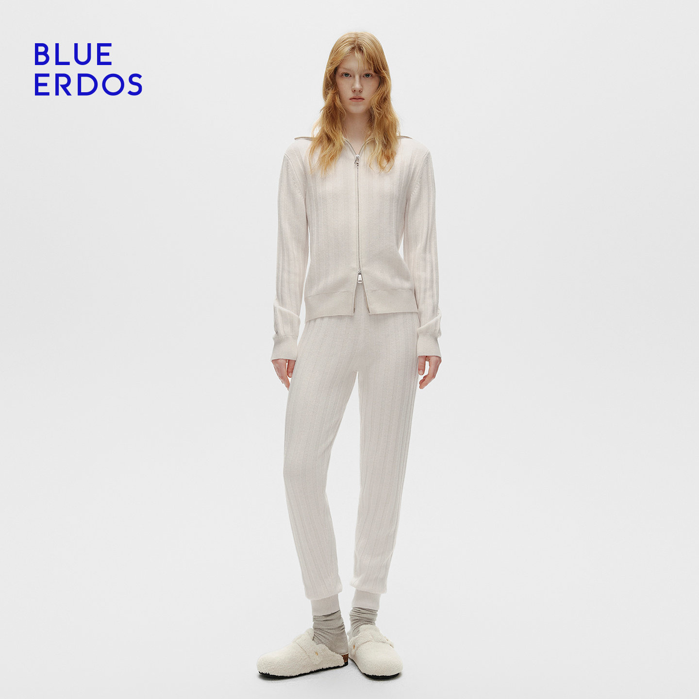 【设计师系列】BLUE ERDOS冬季100%山羊绒纯色翻领短款针织开衫