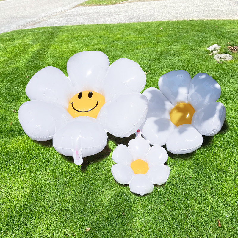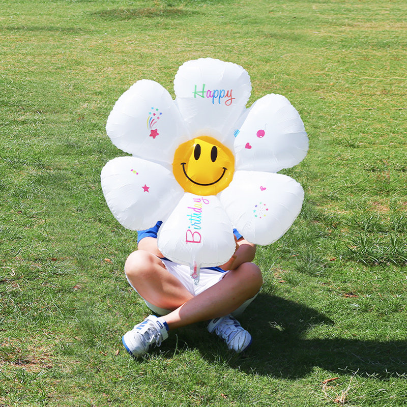 大号太阳花朵黄笑脸小雏菊铝膜气球儿童生日布置派对装饰拍照道具