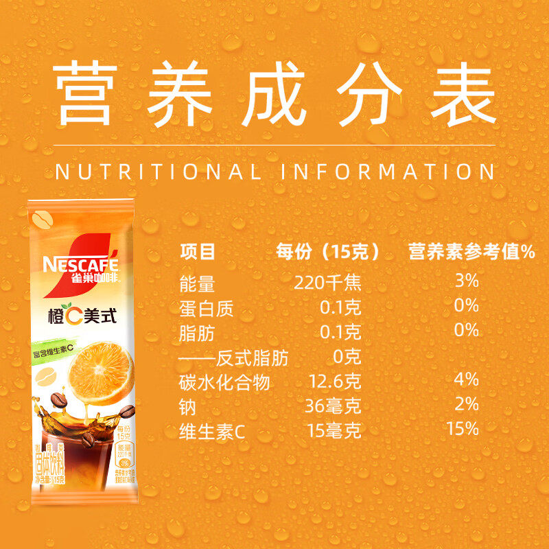 雀巢咖啡粉橙C美式50条特调果咖速溶三合一冷热双冲泡学生办公室