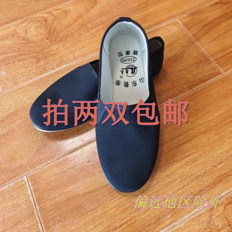 山东鲁泰防滑布鞋低帮一脚蹬男士黑色工作鞋子散步健步鞋胶鞋黑鞋