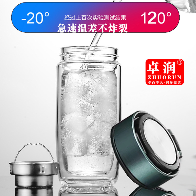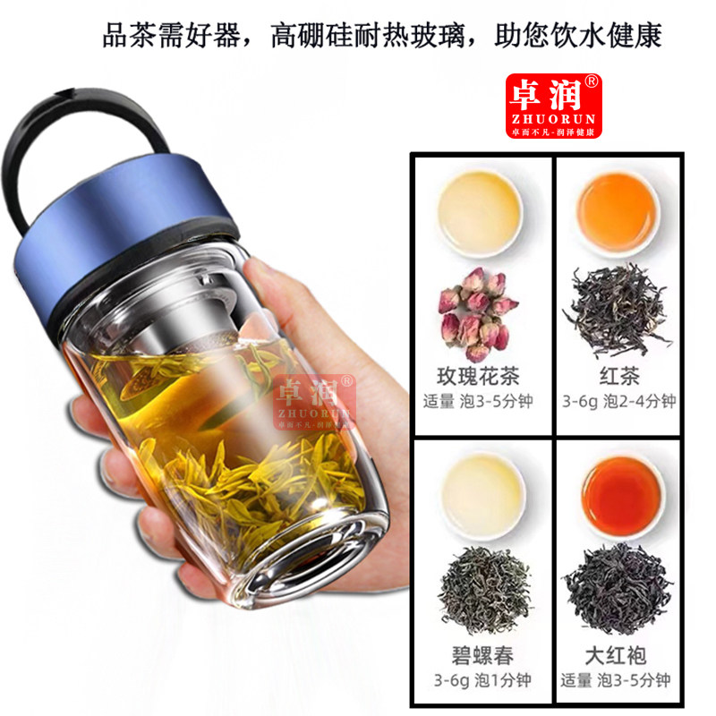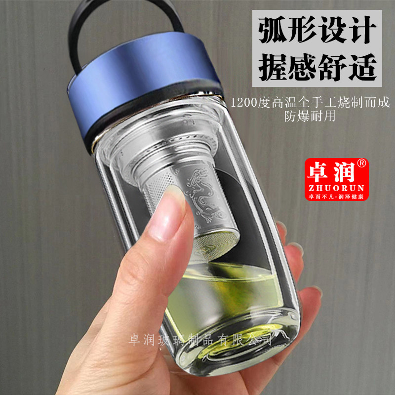 大容量双层玻璃水杯防爆耐热提环泡茶杯茶水分离鹅蛋杯便携隔热