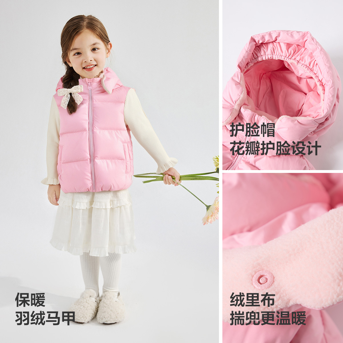 笛莎官方旗舰童装女童羽绒马甲冬季新款女孩宝宝儿童时尚保暖背心