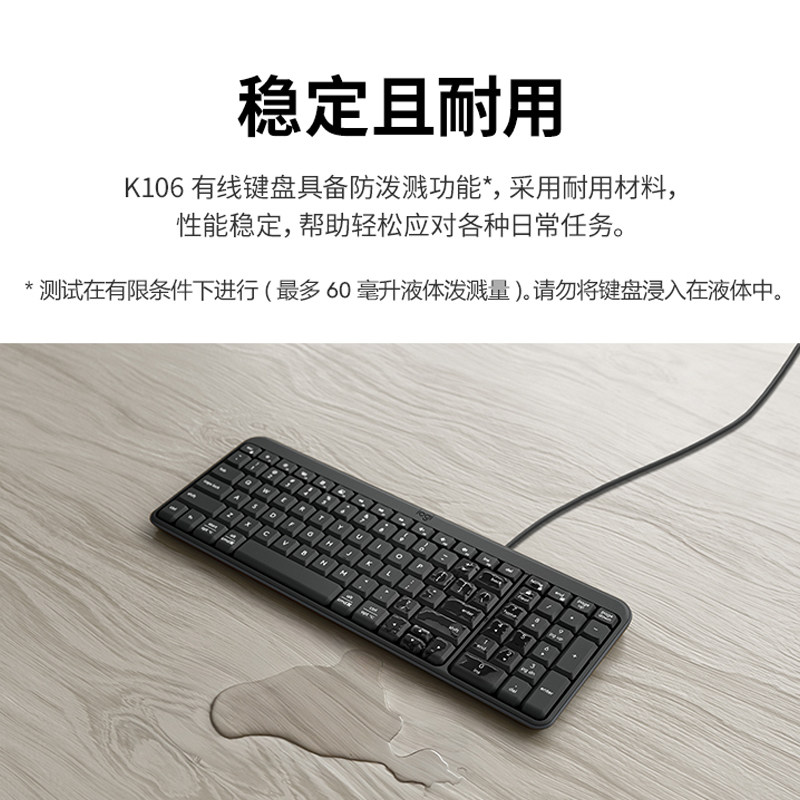 罗技K106有线键盘笔记本办公打字专用台式电脑商务家用M86拆包