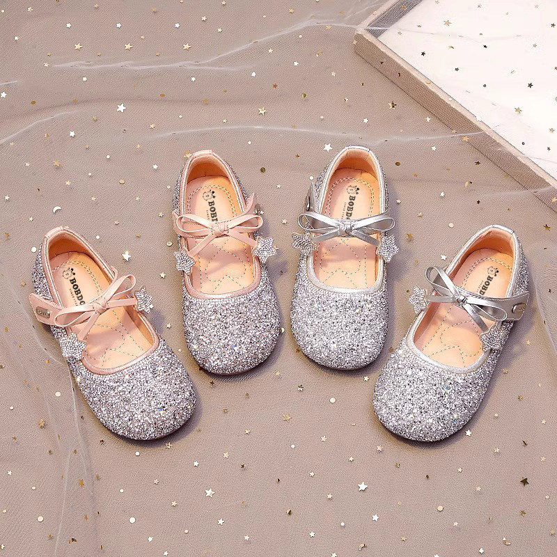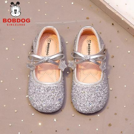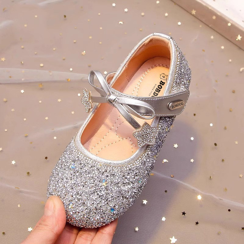 巴布豆真皮女童公主鞋2026春秋季新款儿童水晶单鞋女孩软底小皮鞋