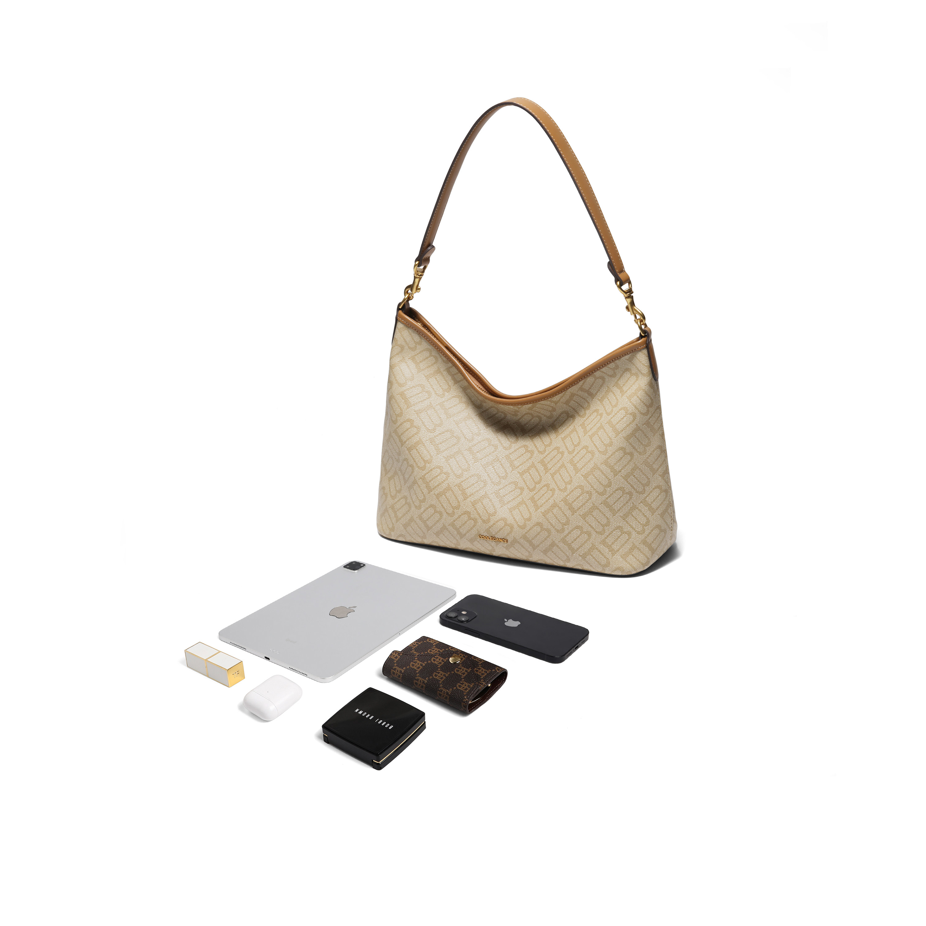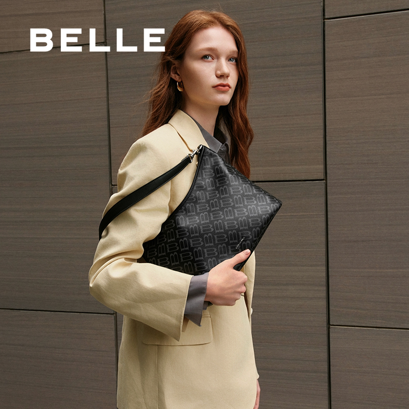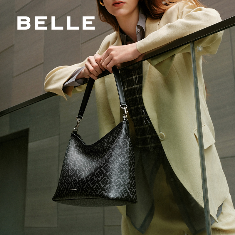 百丽包包女新款商场同款老花通勤hobo包大容量托特饺子包X7388CX5