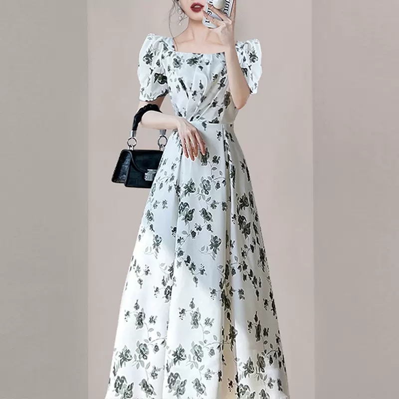 高级感气质收腰减龄碎花连衣裙2025夏季新款女装名媛显瘦修身裙子