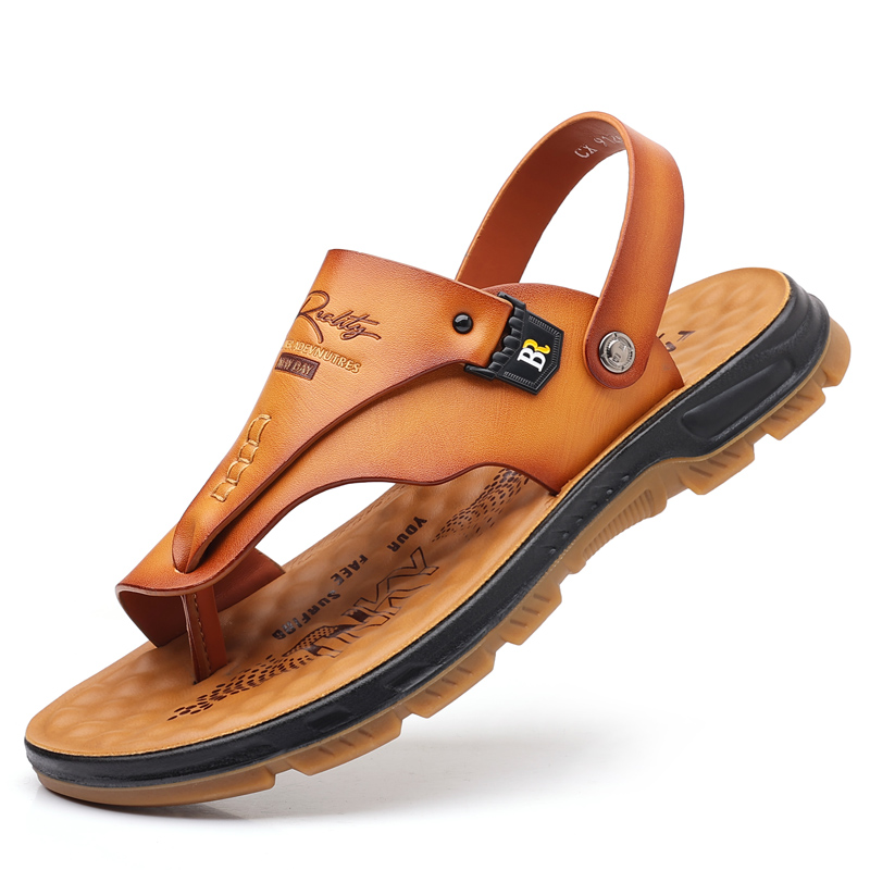 啄木鸟凉鞋男真皮2024夏季男士夹脚人字凉拖鞋牛筋底休闲沙滩鞋男