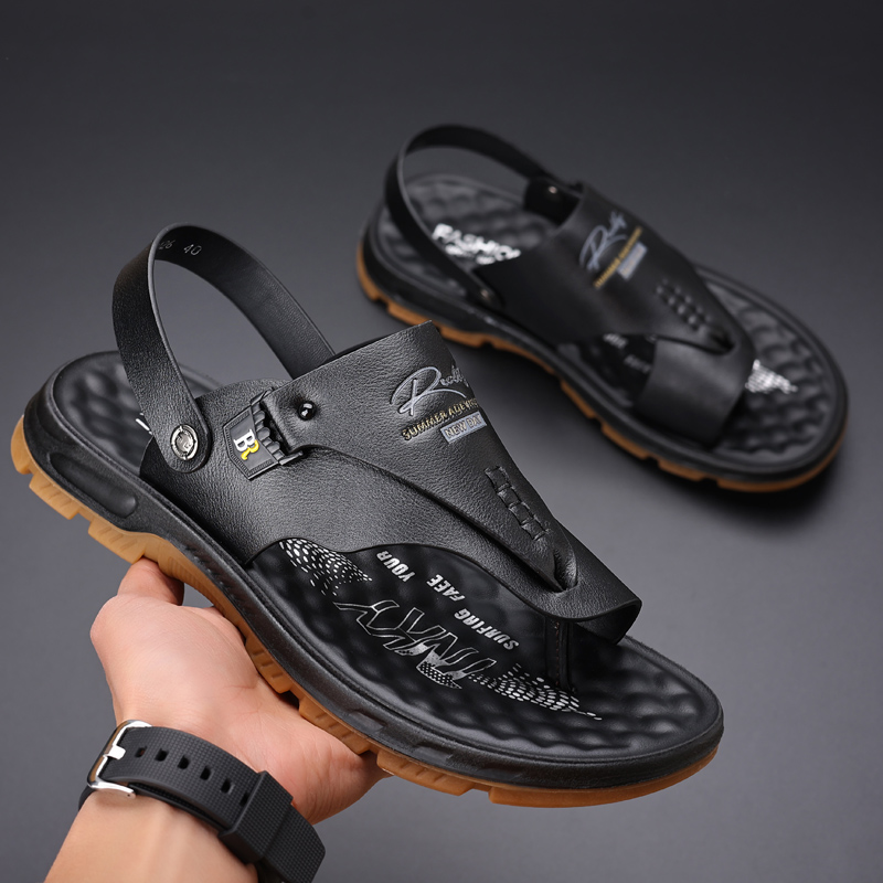 真皮男士凉鞋啄木鸟牛筋底休闲