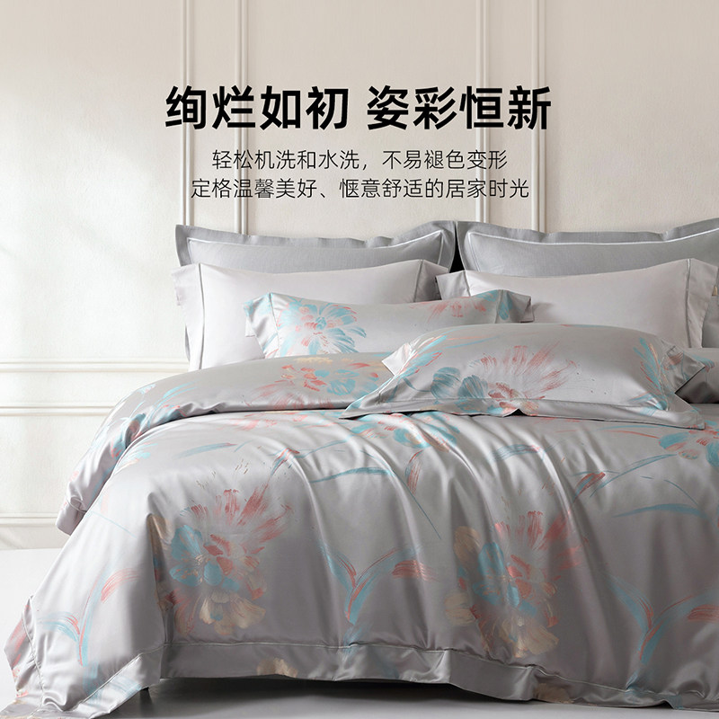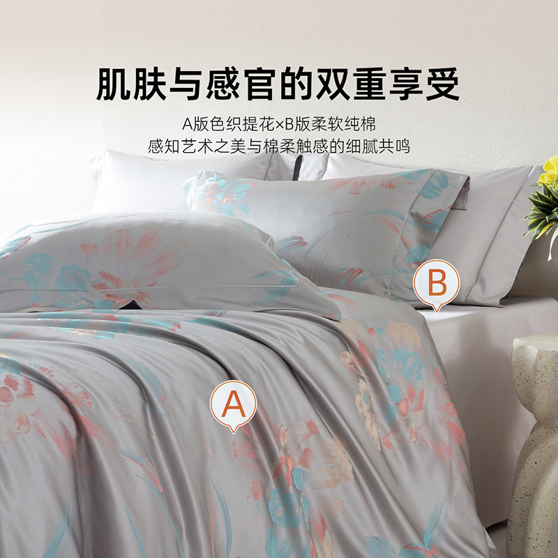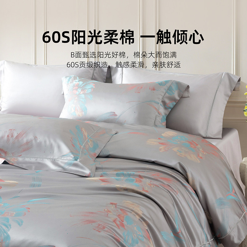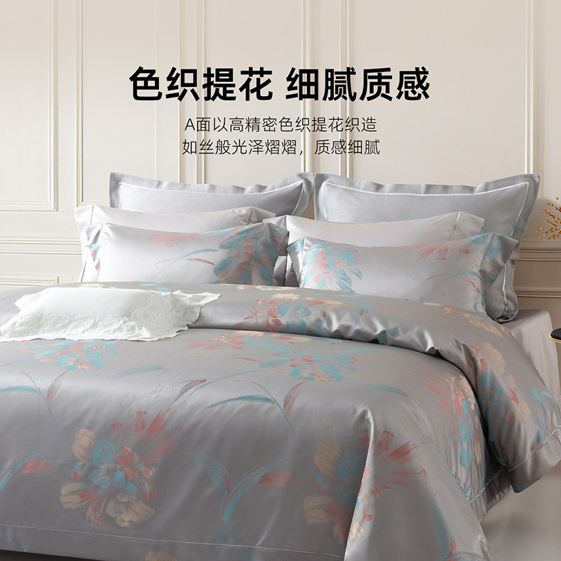 梦洁家纺60S长绒棉色织提花四件套全棉纯棉床单被套轻奢高端床品