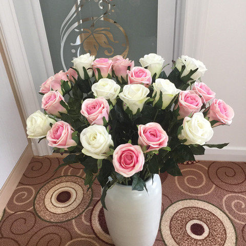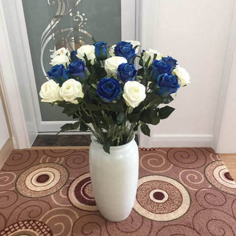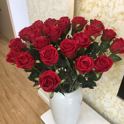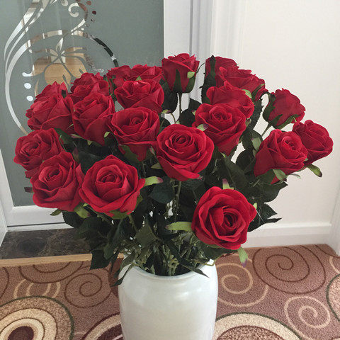 大红色玫瑰花 假花单支婚房绒布绢花室内装饰桌面客厅 高级仿真花