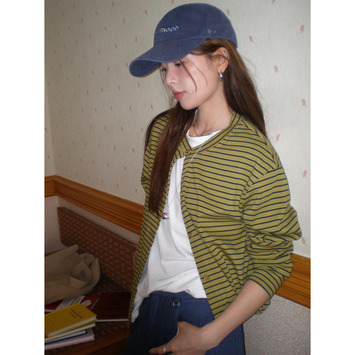 CCKOK 拼色条纹圆领卫衣开衫2025秋季新款复古休闲宽松慵懒外套女