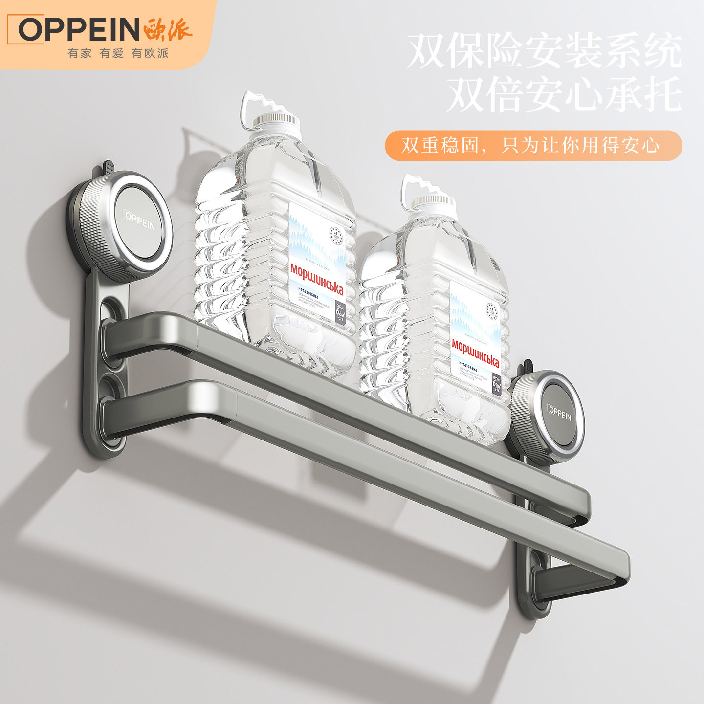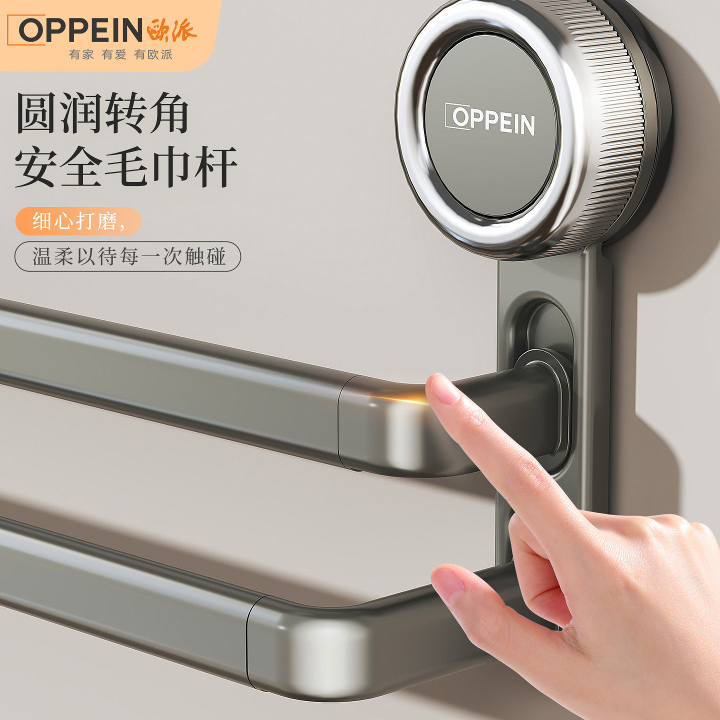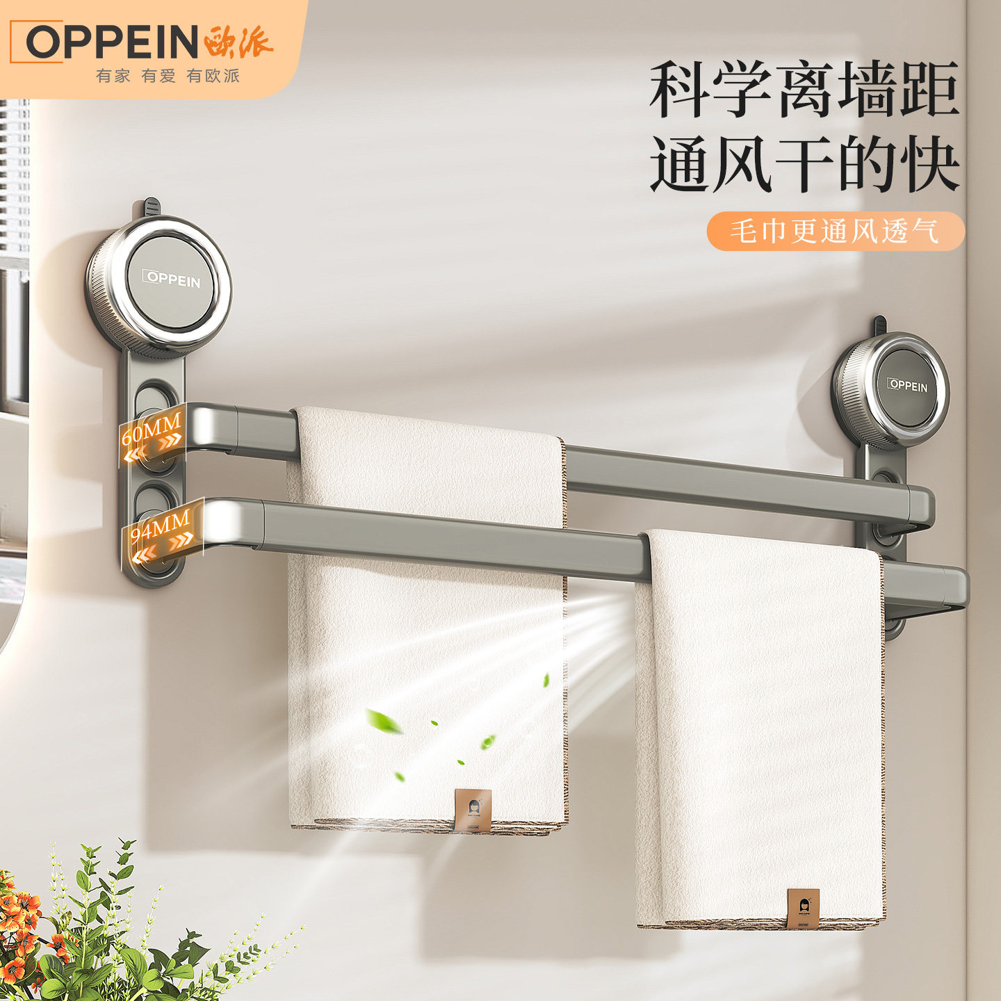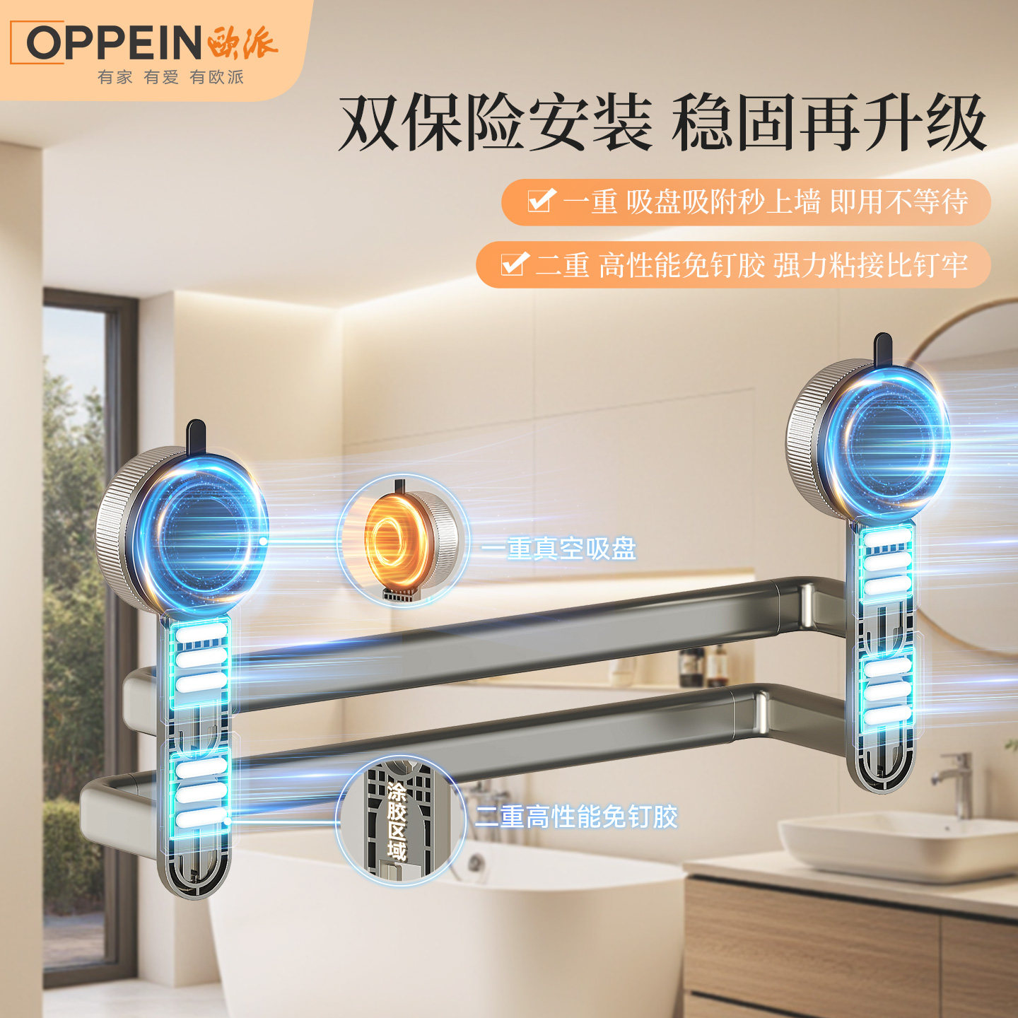 欧派吸盘毛巾架卫生间免打孔浴室毛巾杆置物架洗手间浴巾收纳挂架