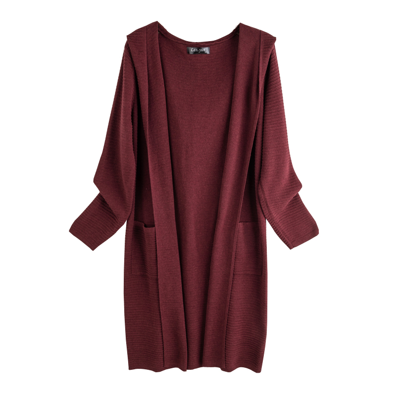 中长款连帽针织衫女2024秋冬新真丝羊绒休闲V领宽松毛衣外套开衫