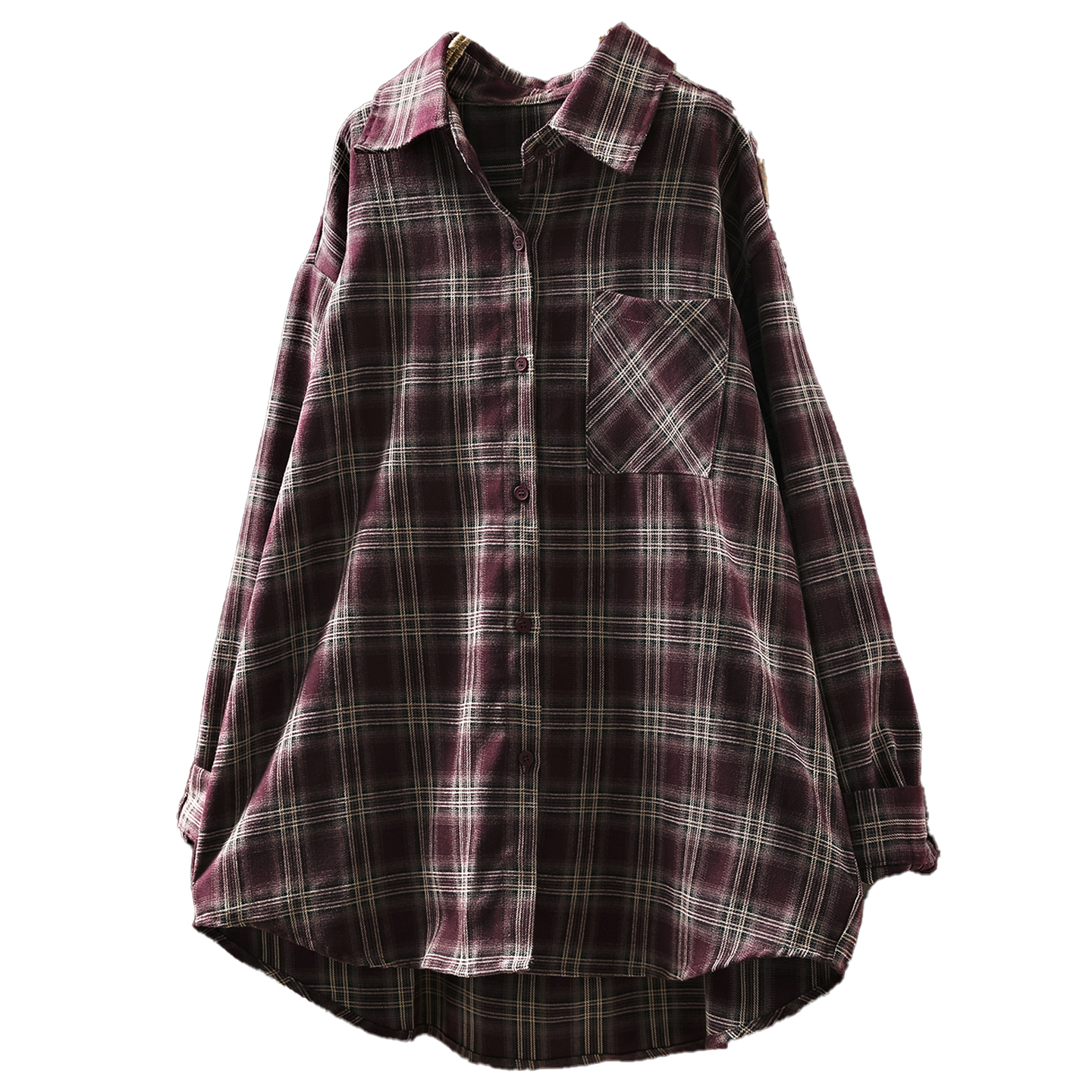 2025独特超好看衬衫女秋季新款纯棉红色磨毛格纹长袖文艺复古衬衣