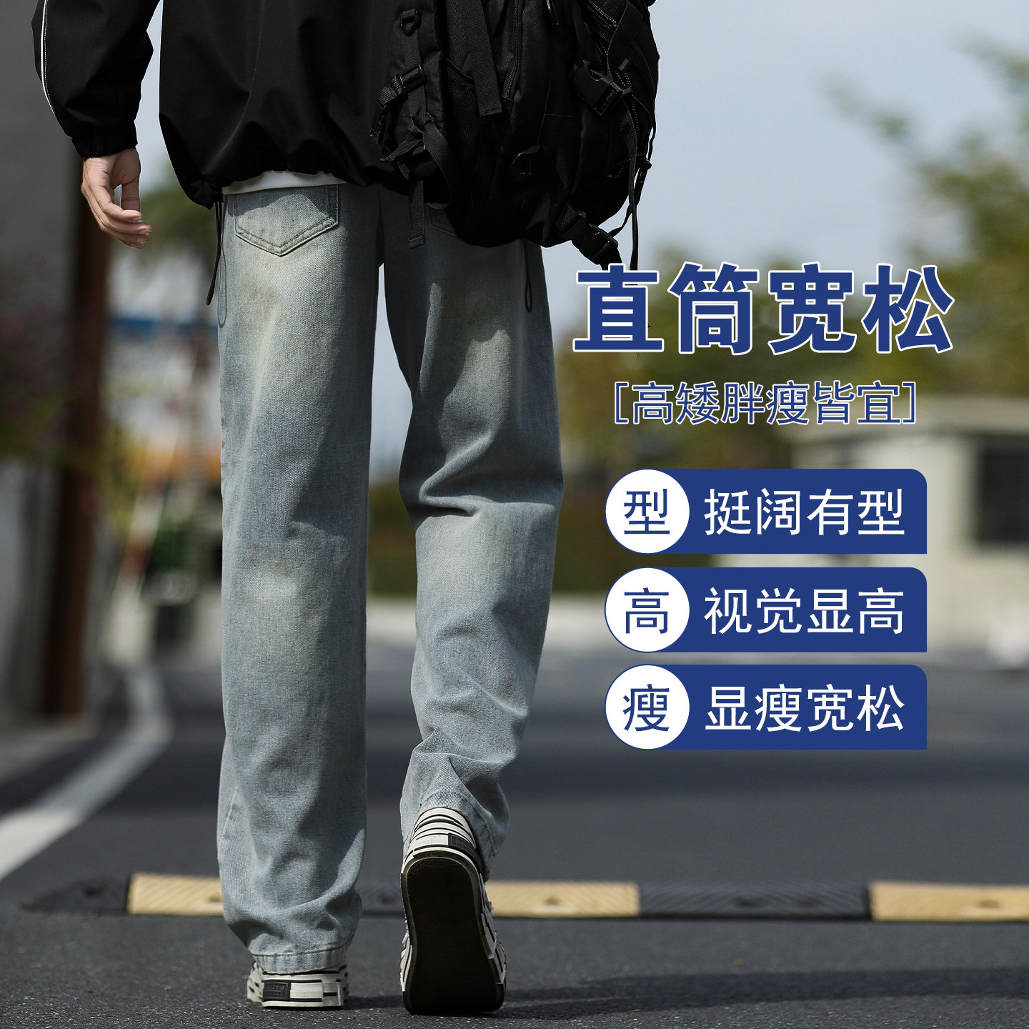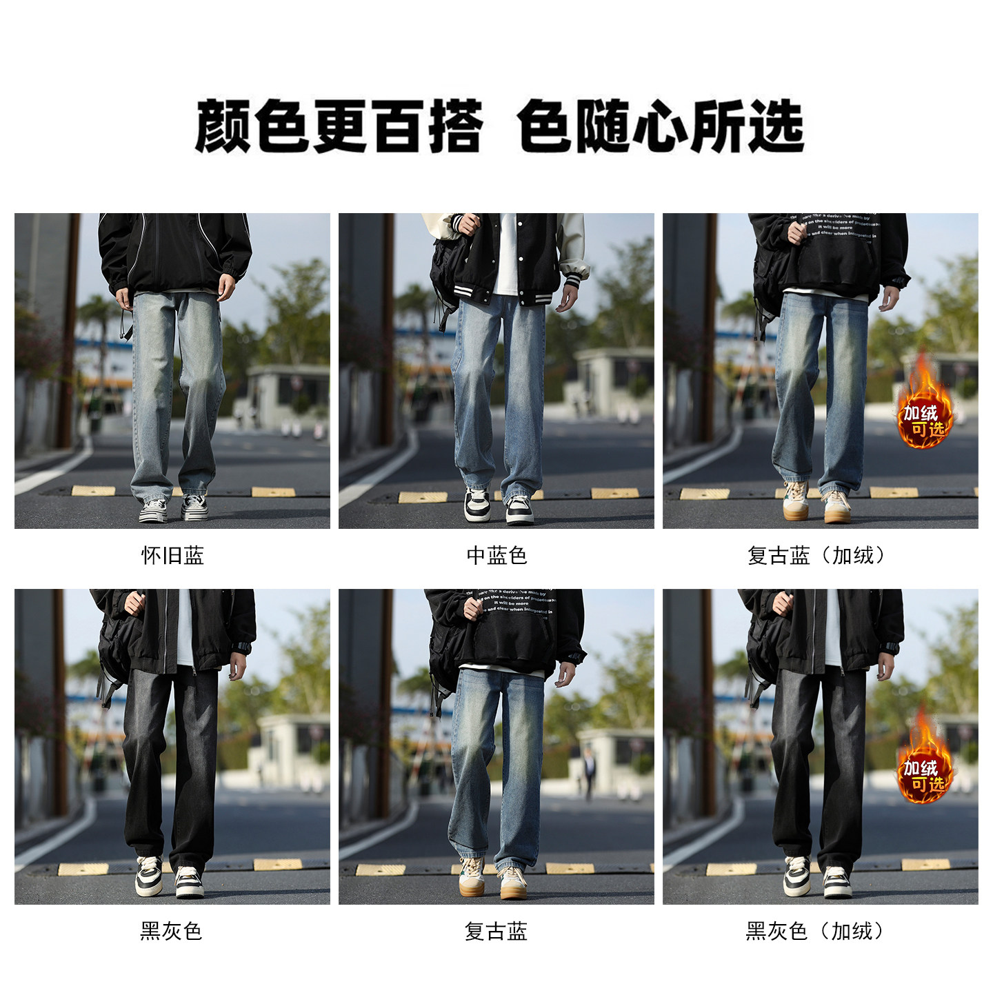 NG真维斯男士复古牛仔裤秋冬新款2025美式高街直筒加绒休闲长裤男