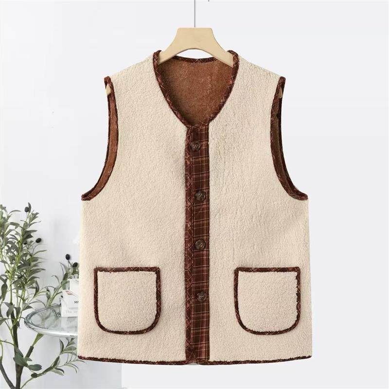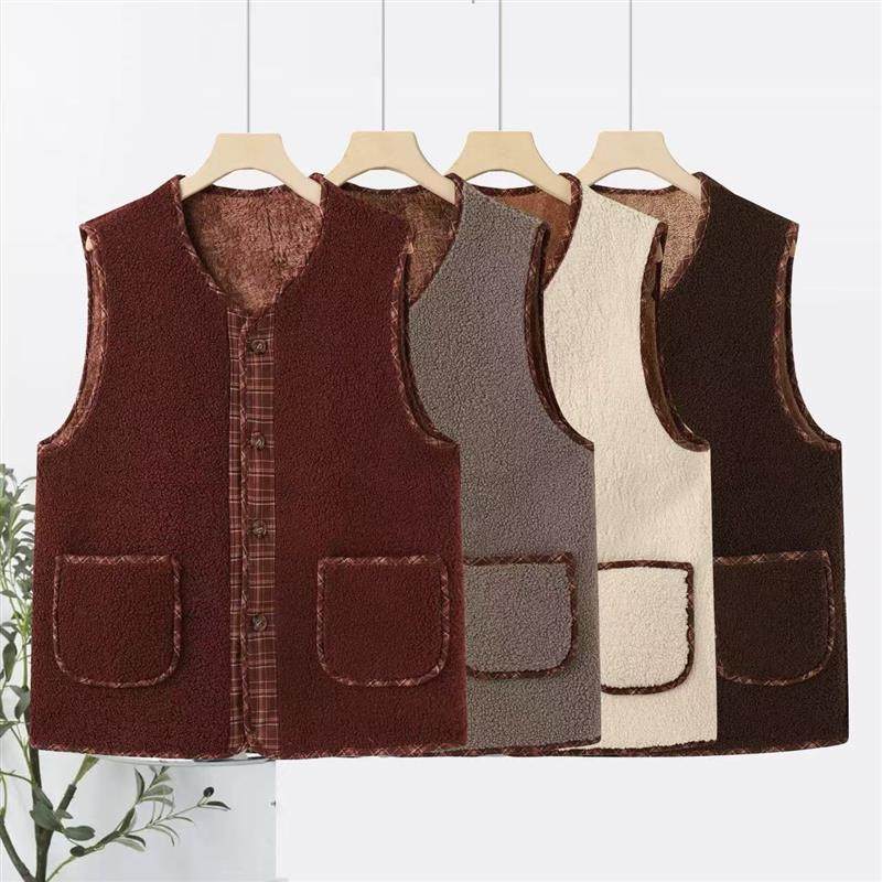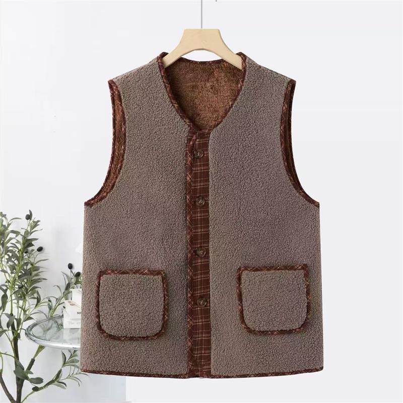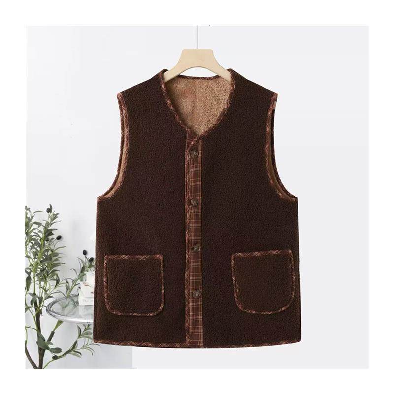 新加绒加厚颗粒绒复合北极绒坎肩背心马甲洋气妈妈装马夹保暖背心
