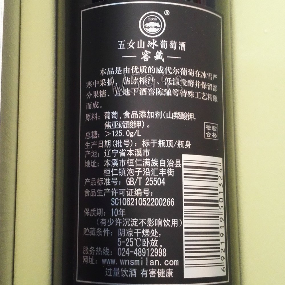 礼品本溪桓仁特产辽宁五女山窖藏白冰葡萄酒375ml威代尔甜型冰酒