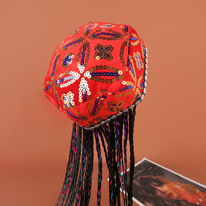 新疆舞蹈帽演出帽六一儿童节表演道具头饰幼儿园演出头饰民族带辫