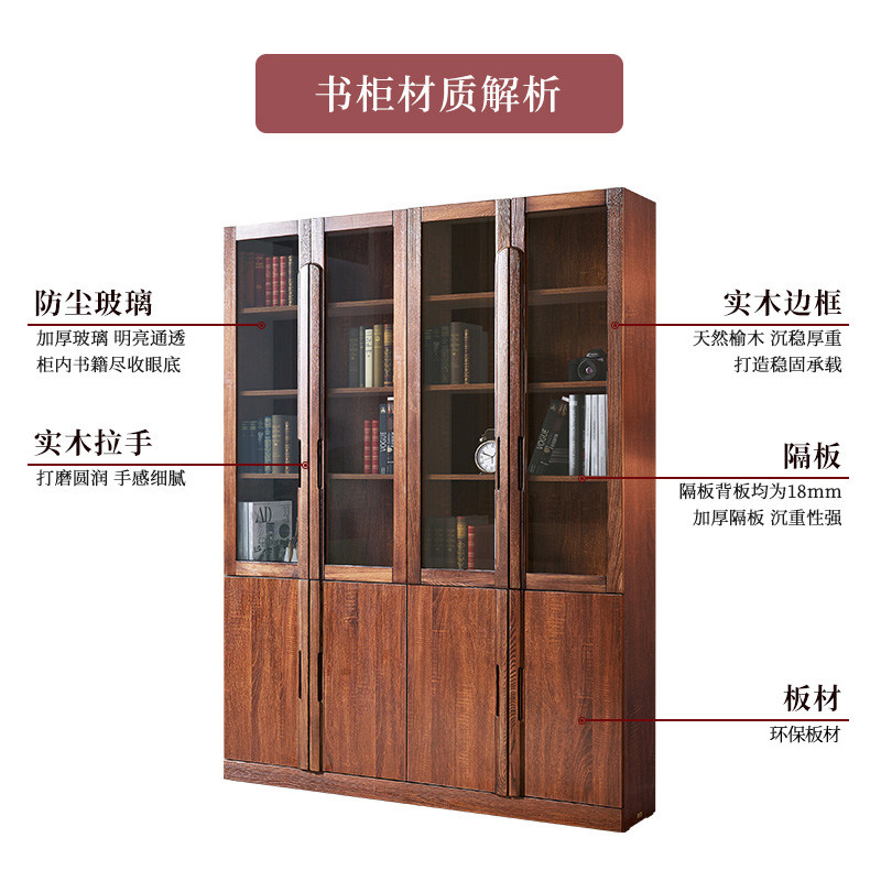 【摩卡】天坛书柜两门客厅家用书架新中式榆木实木板木组合书柜