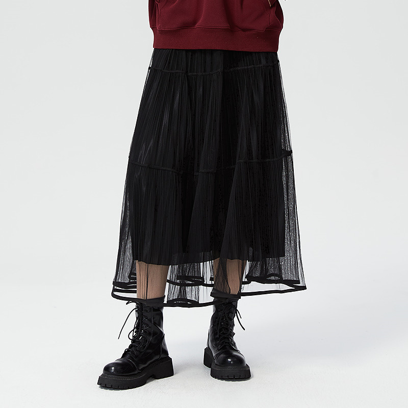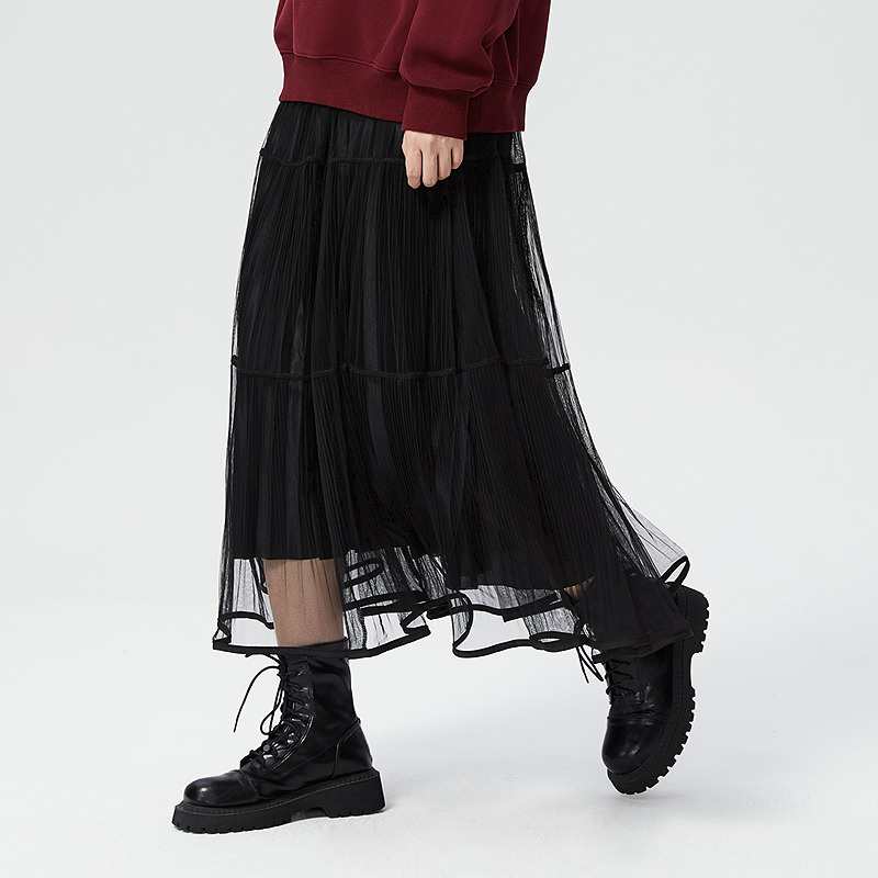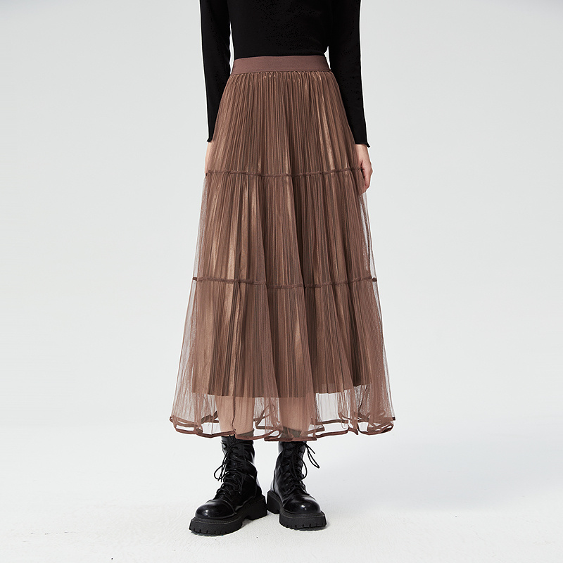 普普风2025年秋季高腰气质遮肉半身裙活力优雅大裙摆网纱半裙9732
