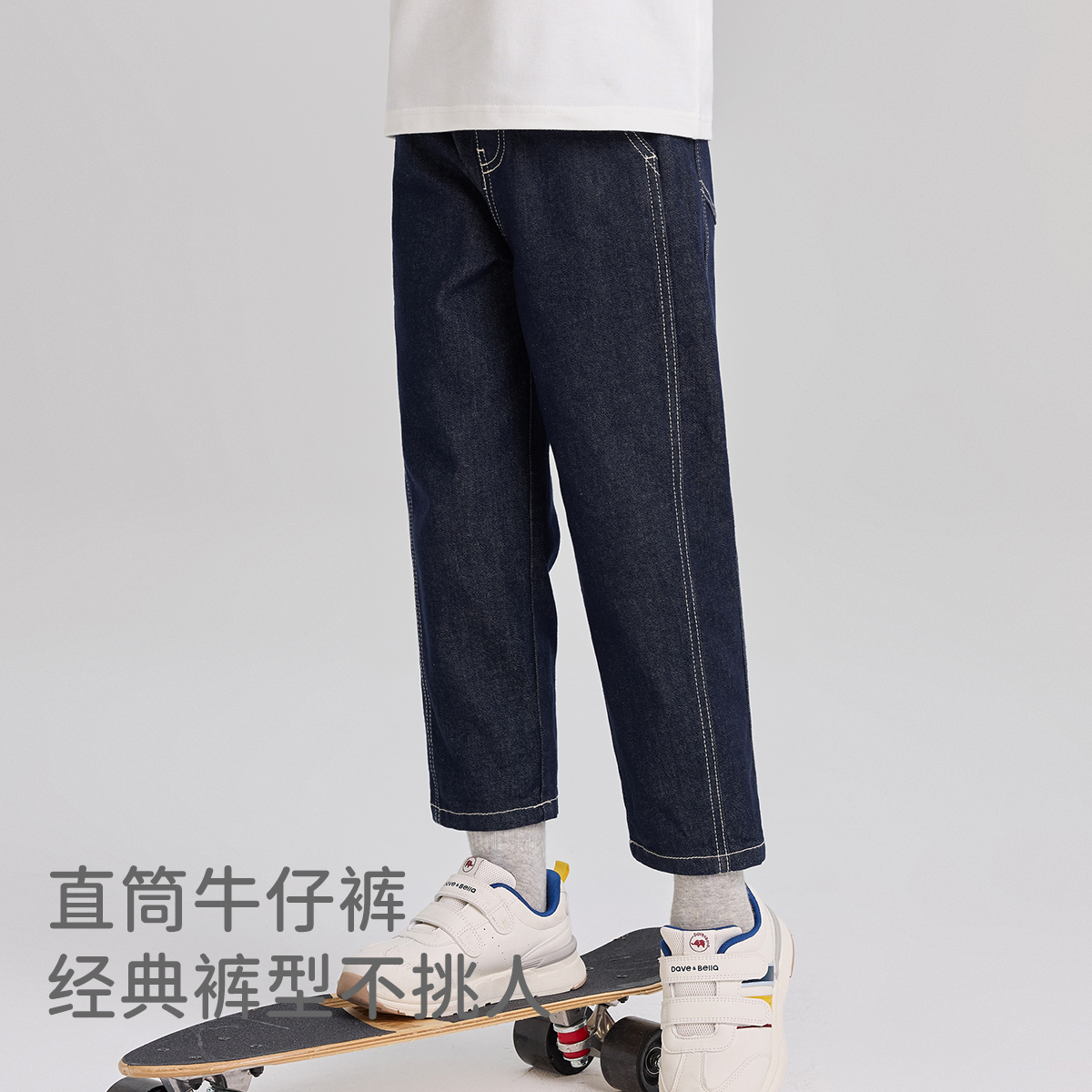 戴维贝拉男童牛仔裤儿童直筒裤大童裤子男孩长裤童装2025秋季新款