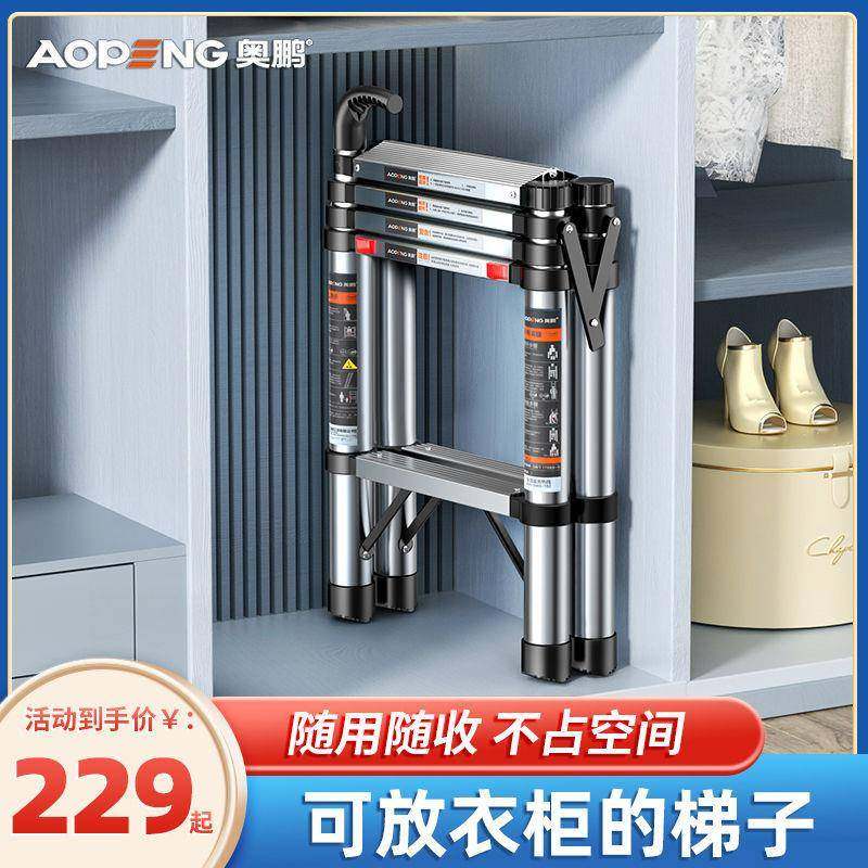 奥鹏多功能家用伸缩梯子加厚不锈钢折叠小梯子室内便携升降人字梯