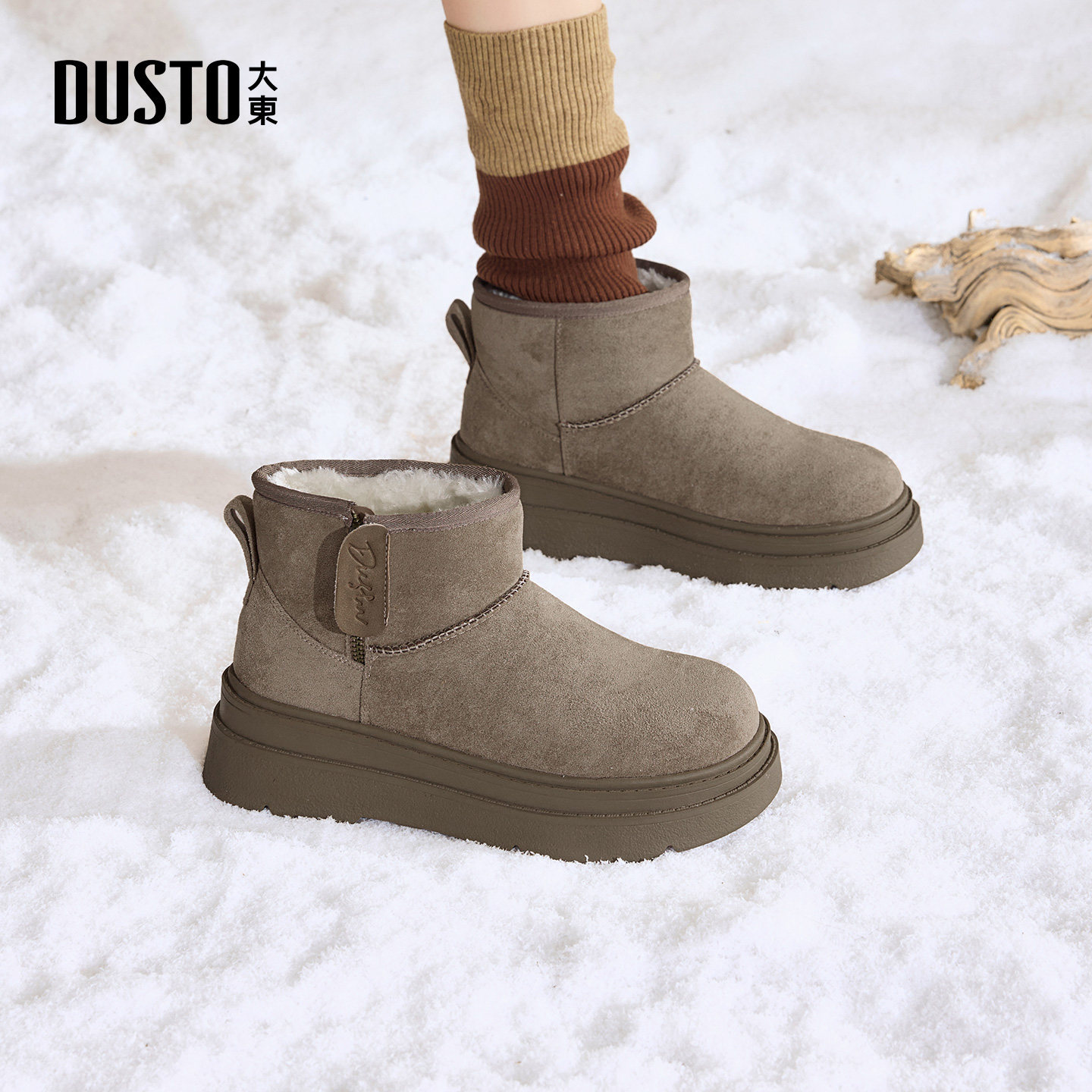 大东雪地靴女靴2025冬季新款加绒加厚女棉鞋短筒侧拉链中筒女短靴