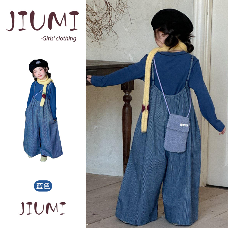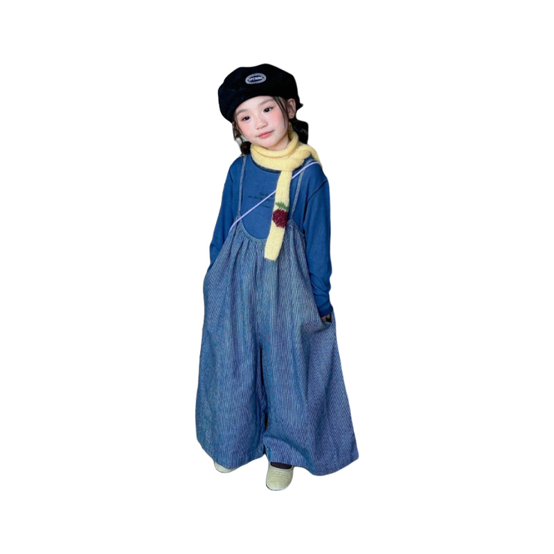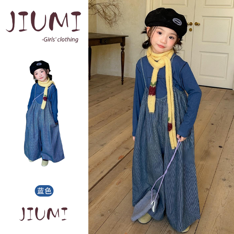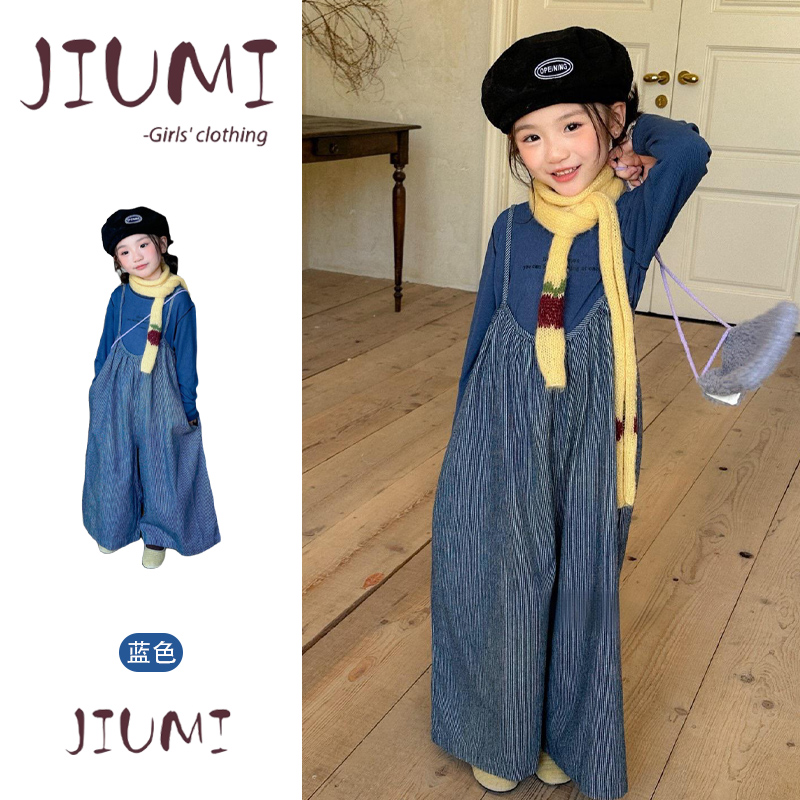 女童春秋韩版休闲慵懒风套装女宝宝纯色上衣条纹吊带裤文艺两件套